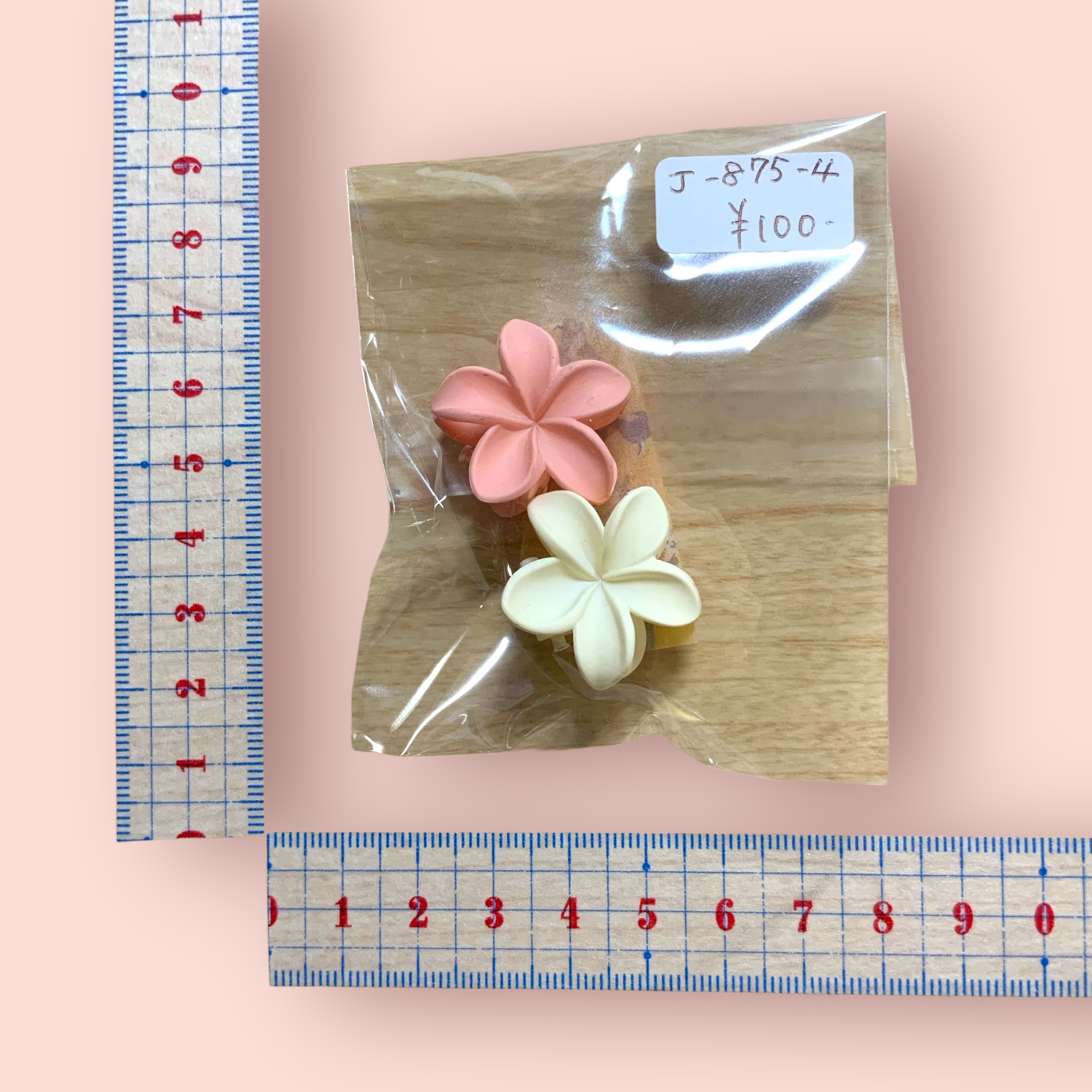ミニ  お花ヘアクリップ  ピンク×オフホワイト