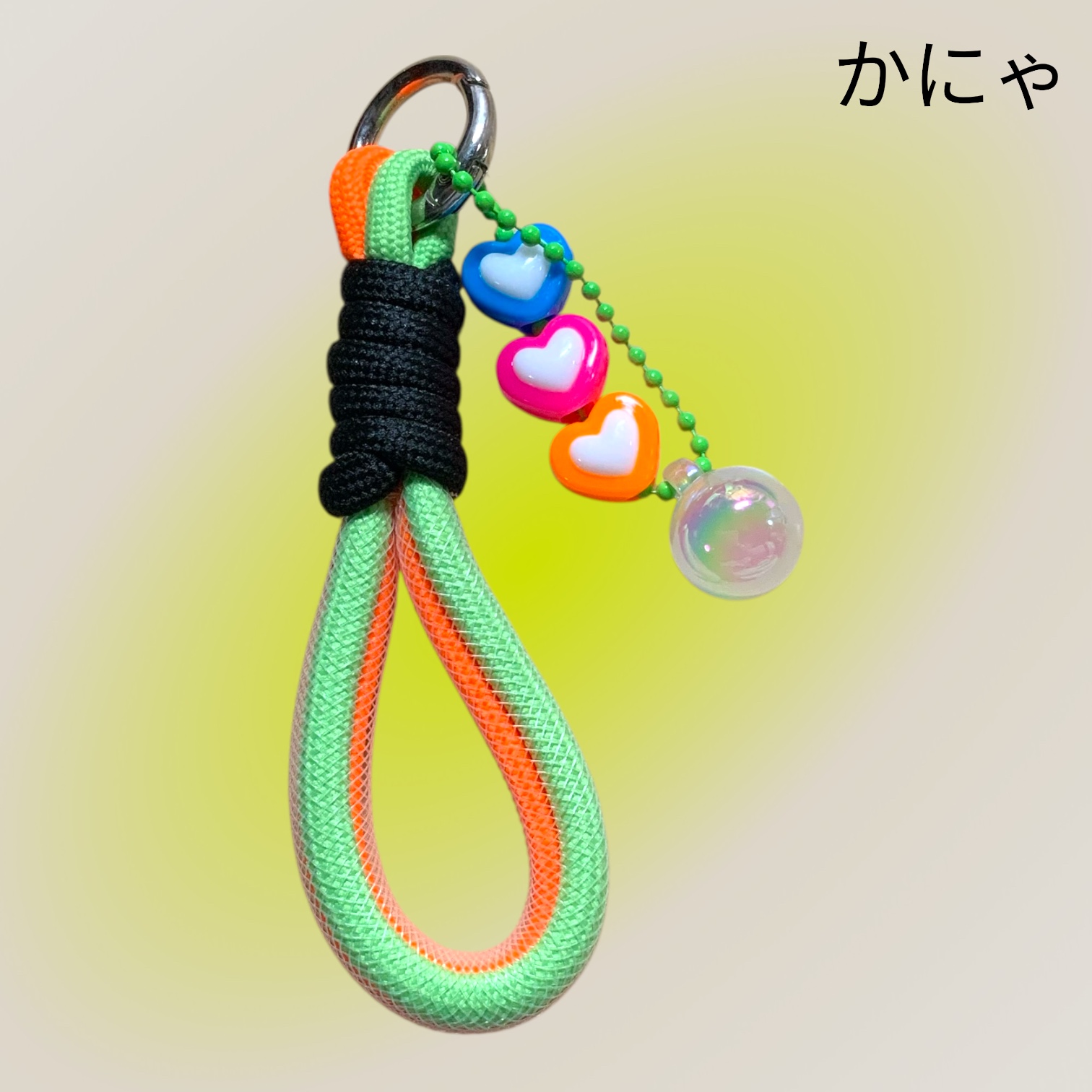 キーホルダー   コード  オレンジ×黄緑 3色ハート