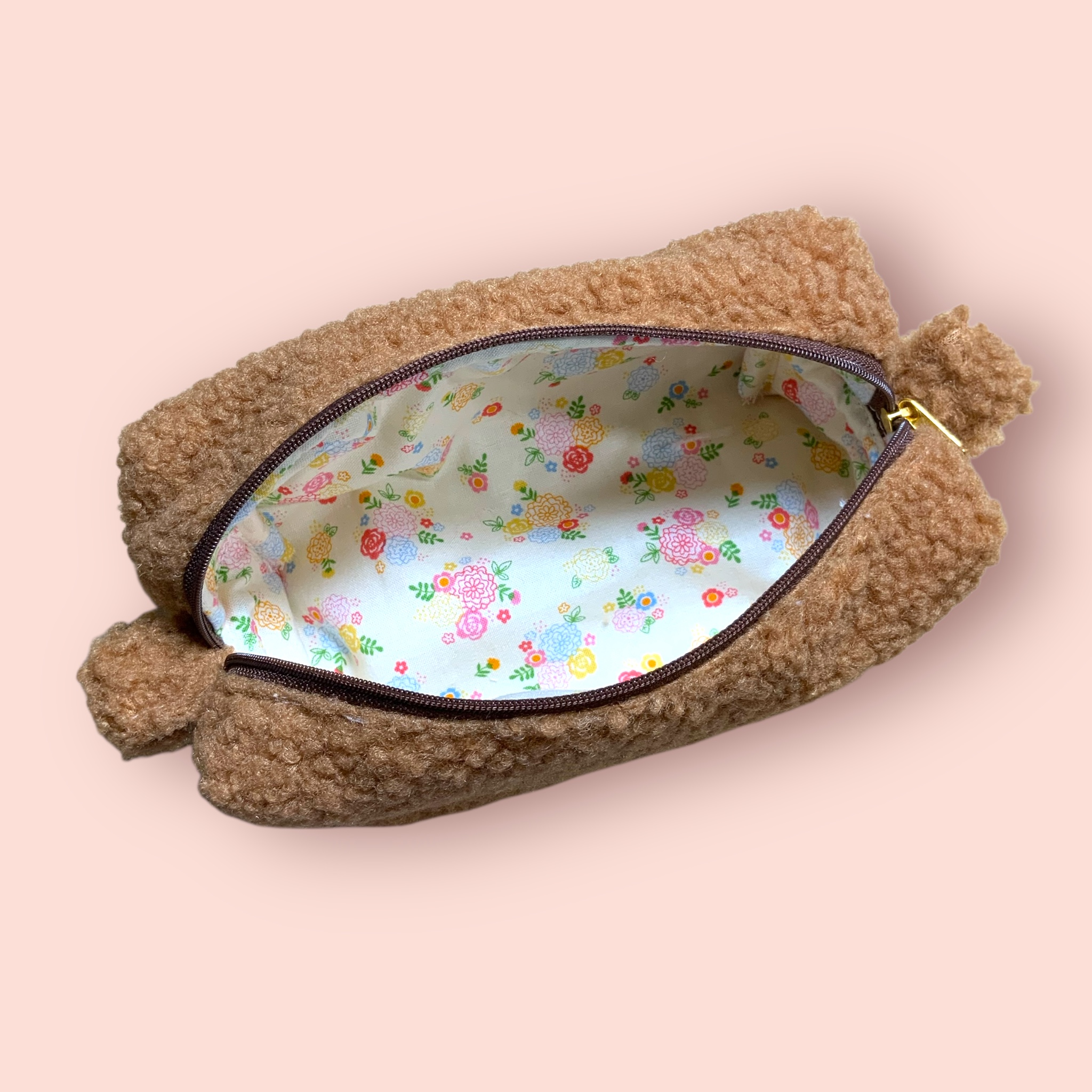ボックスポーチ もふもふ 茶色