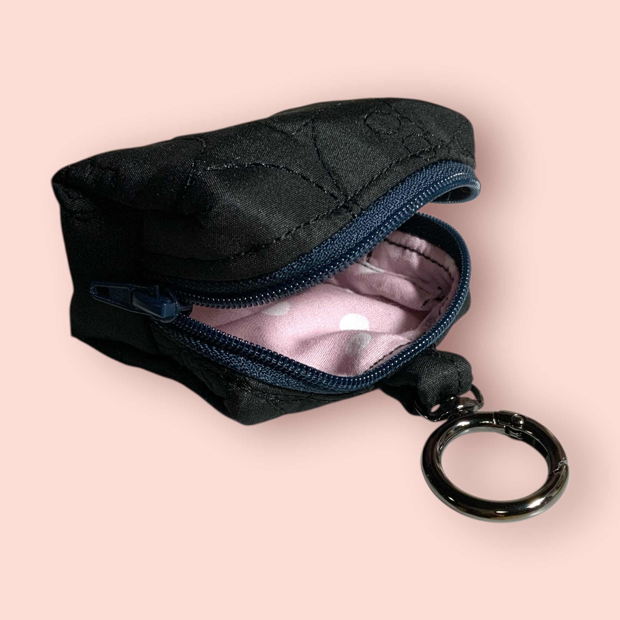 ミニポーチ  キルト  ブラック  ネコ柄