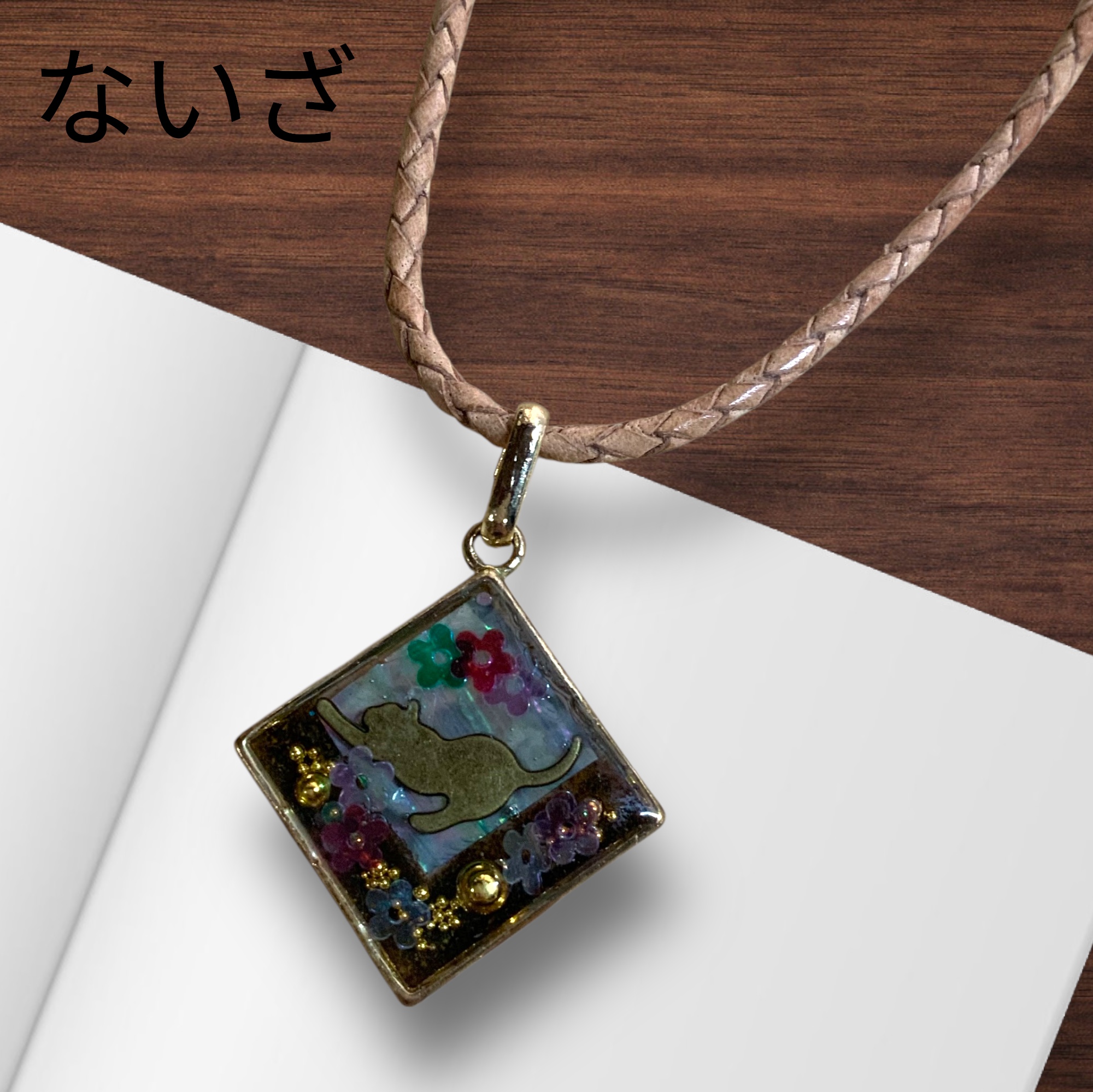 ネックレス 空枠×ねこ 封入