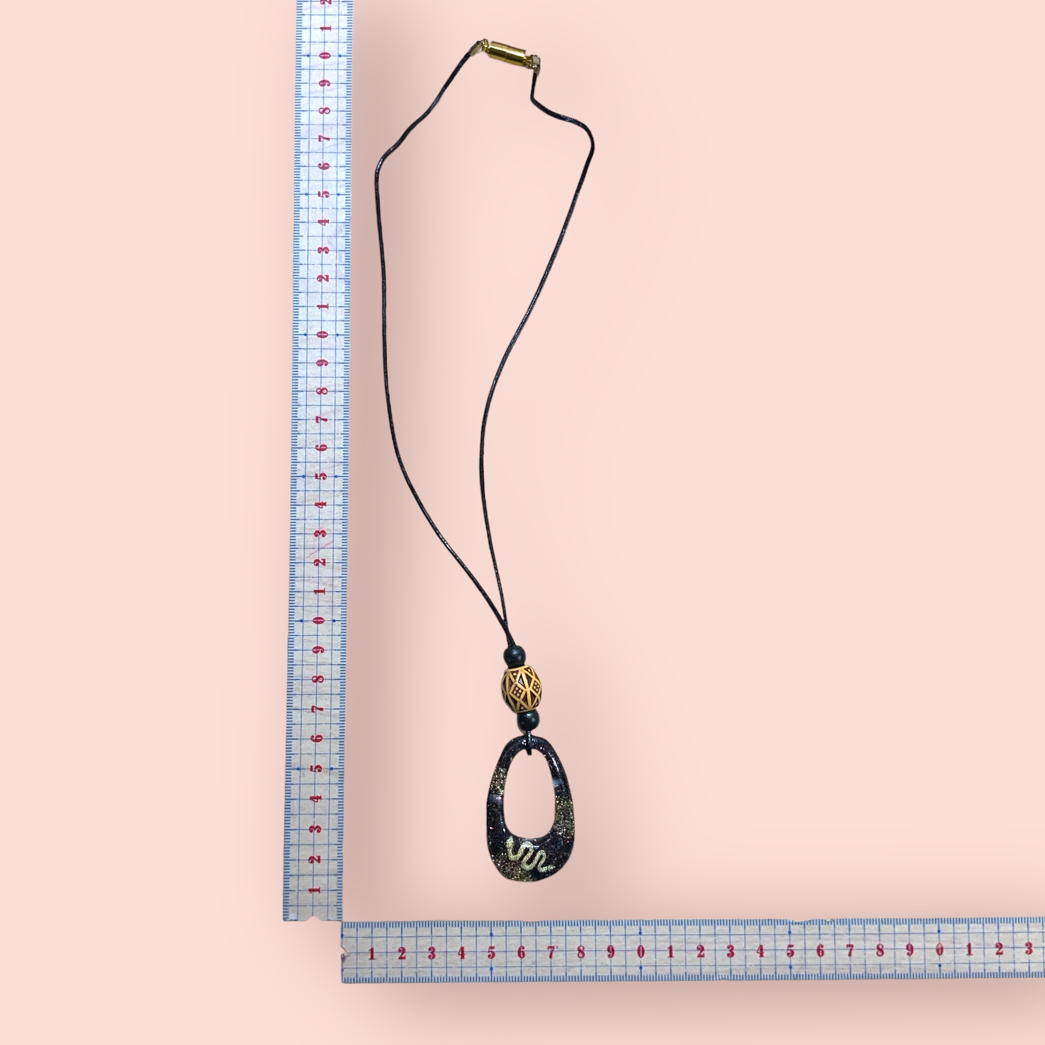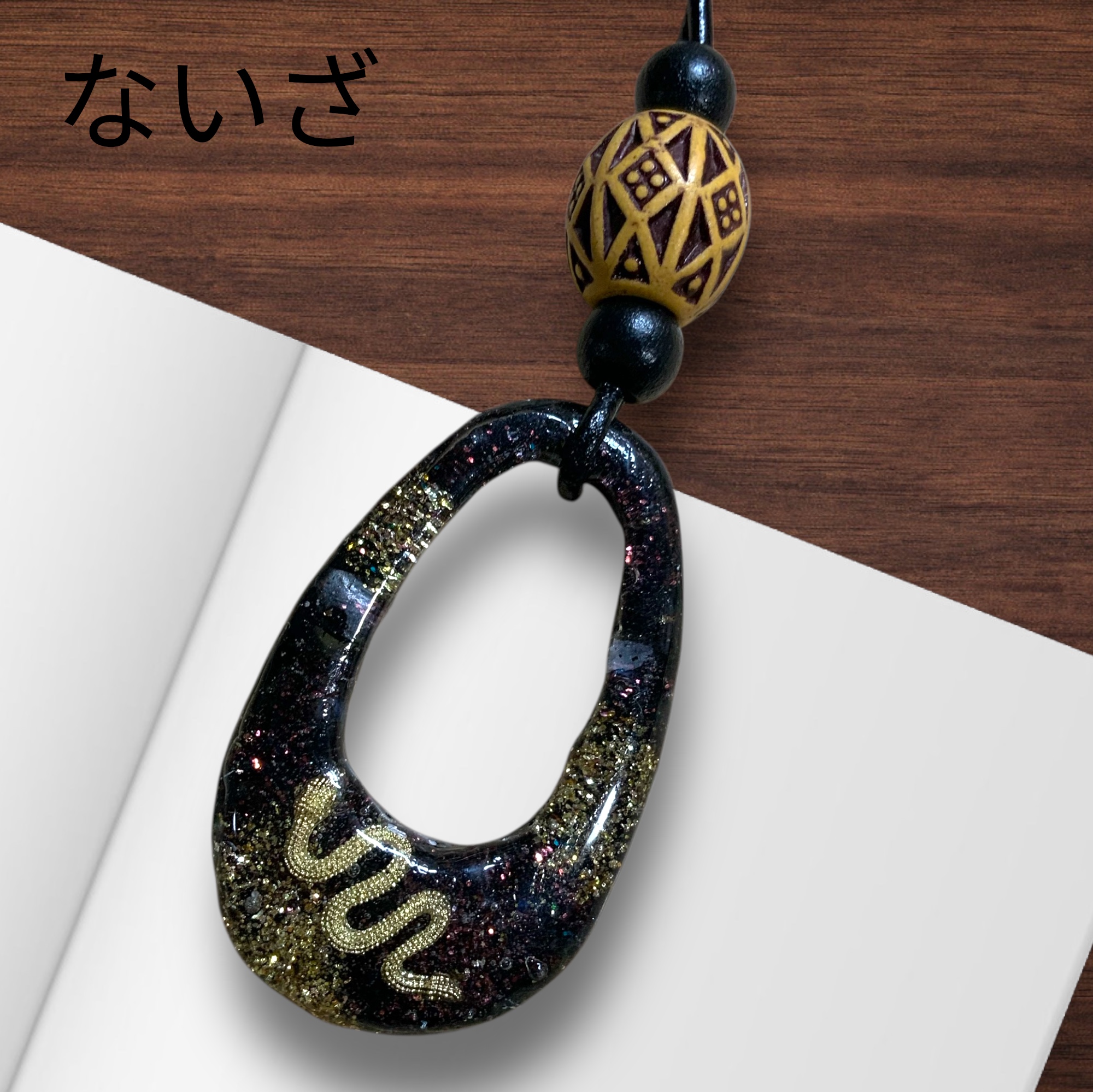 ネックレス 黒 ヘビ×ウッドビーズ
