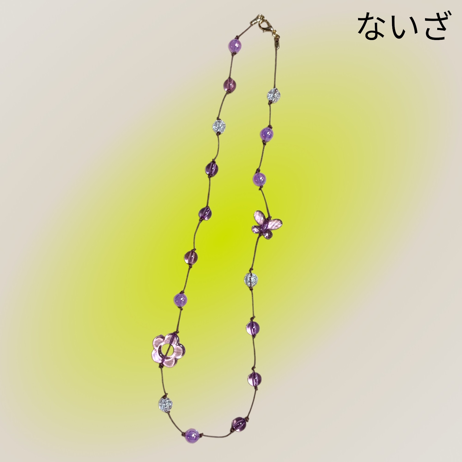 ネックレス パープル 白花蝶