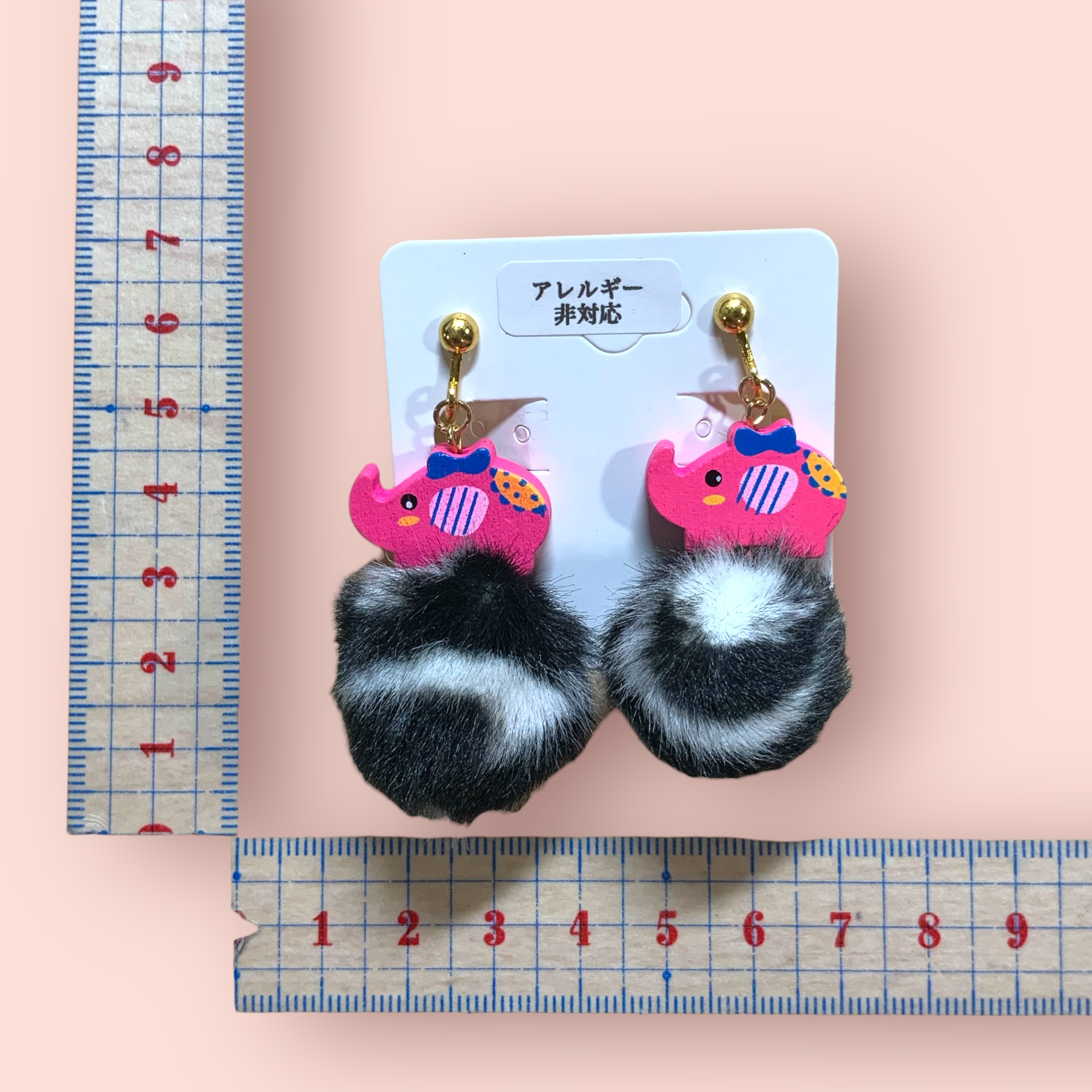 イヤリング 黒白ファー×ピンク ぞう