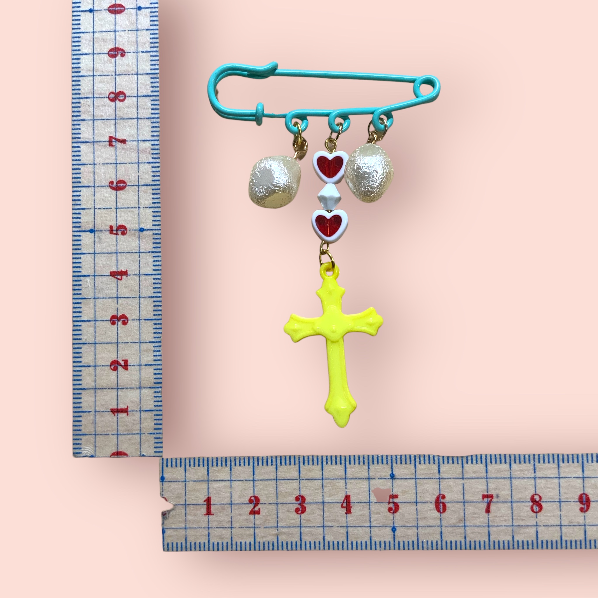 ブローチピン  イエロークロス×コットン風パール