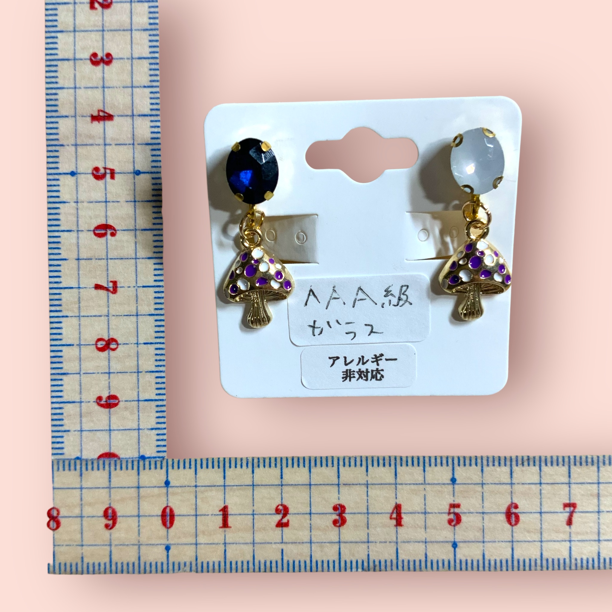 イヤリング パープルきのこ×AAAガラスブルー ホワイト