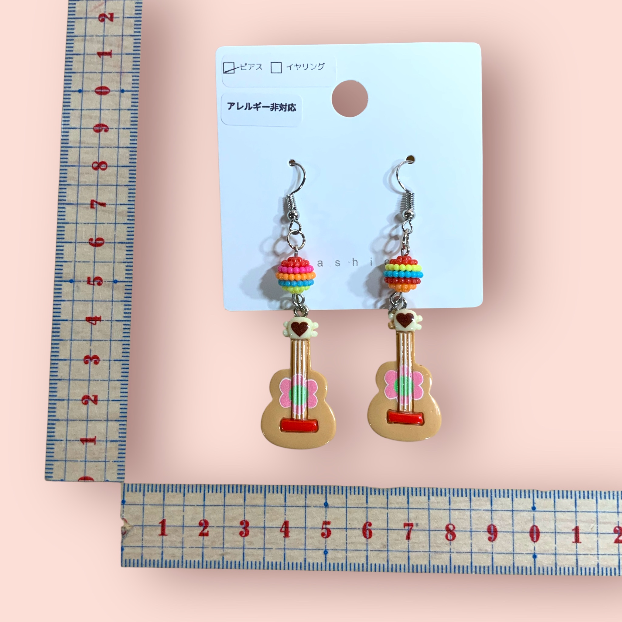 ピアス   薄茶色ウクレレ×カラフルつぶつぶビーズ