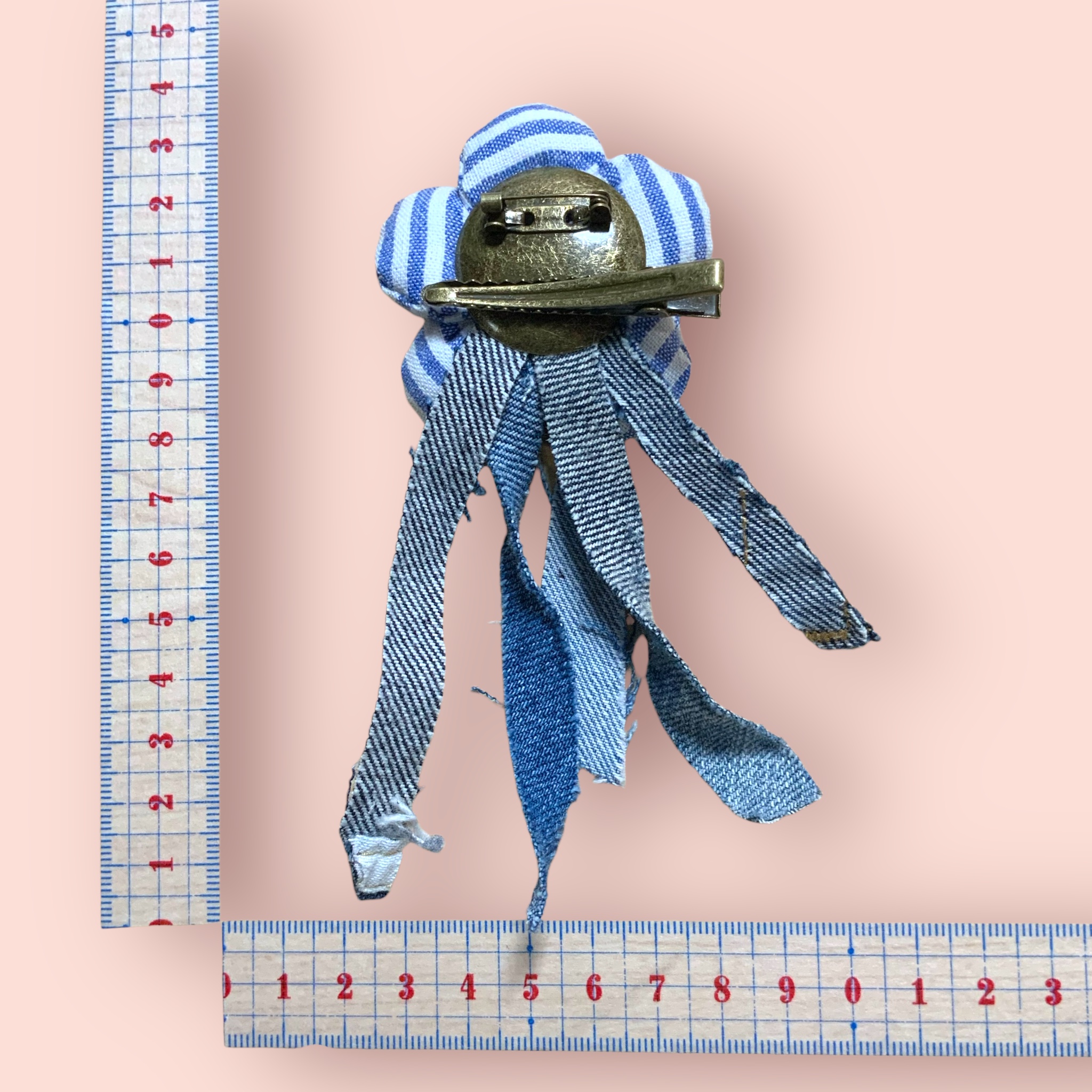 2way ヘアクリップ しましまお花 デニム ウッドボタン