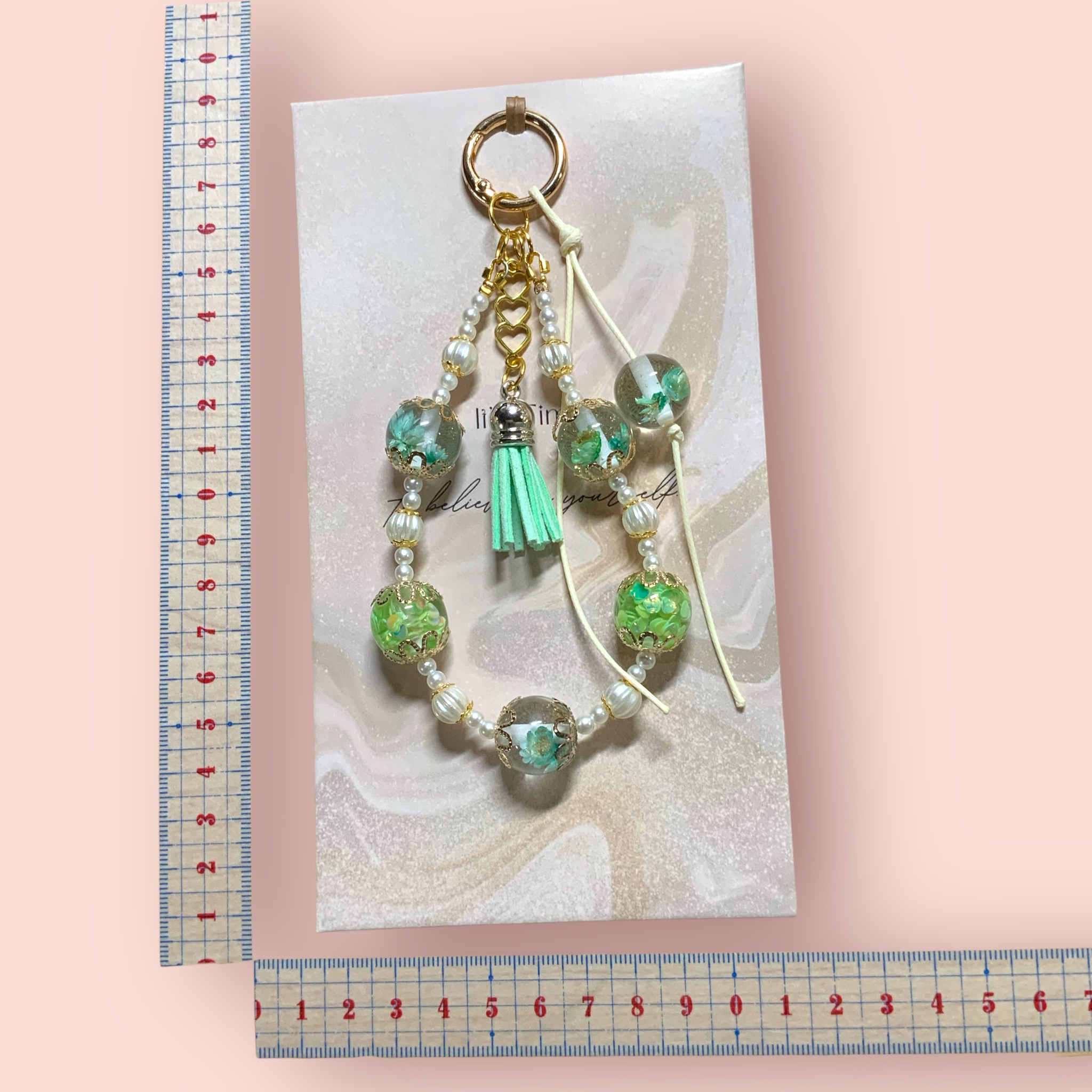 ストラップ   ビーズ  ハートビーズ×花ビーズ×ゴールド