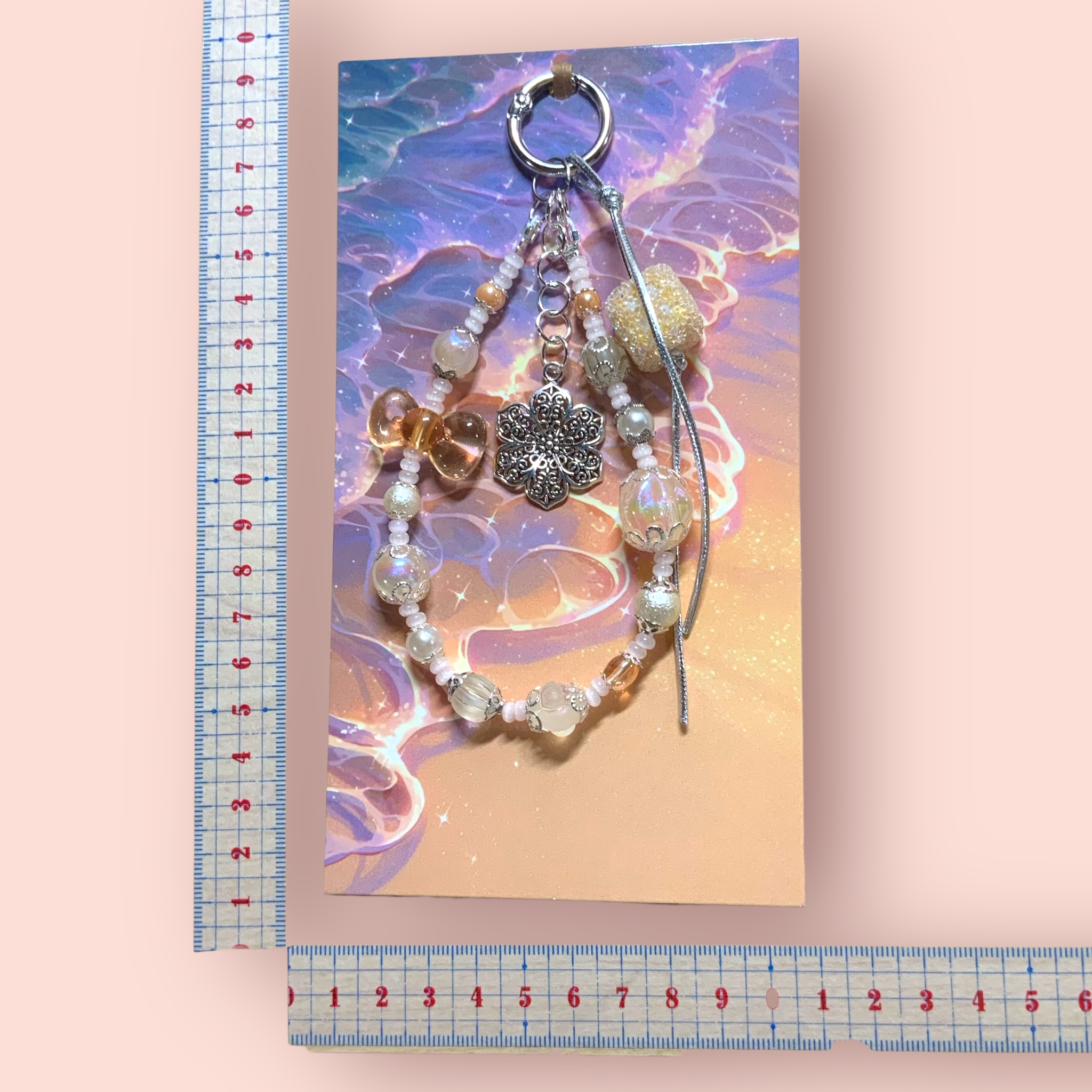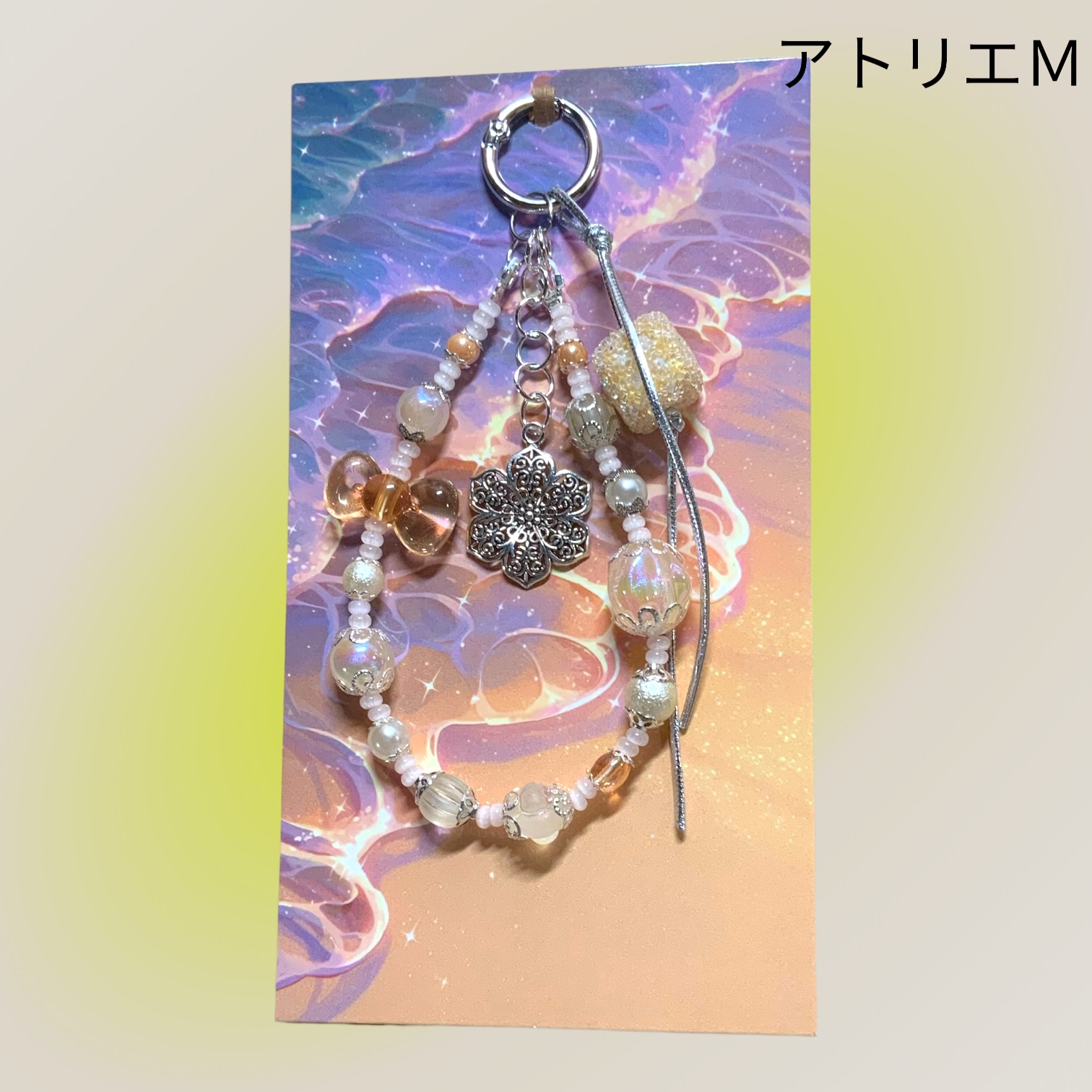 ストラップ   ビーズ  ピンク×オレンジ×シルバー  お花