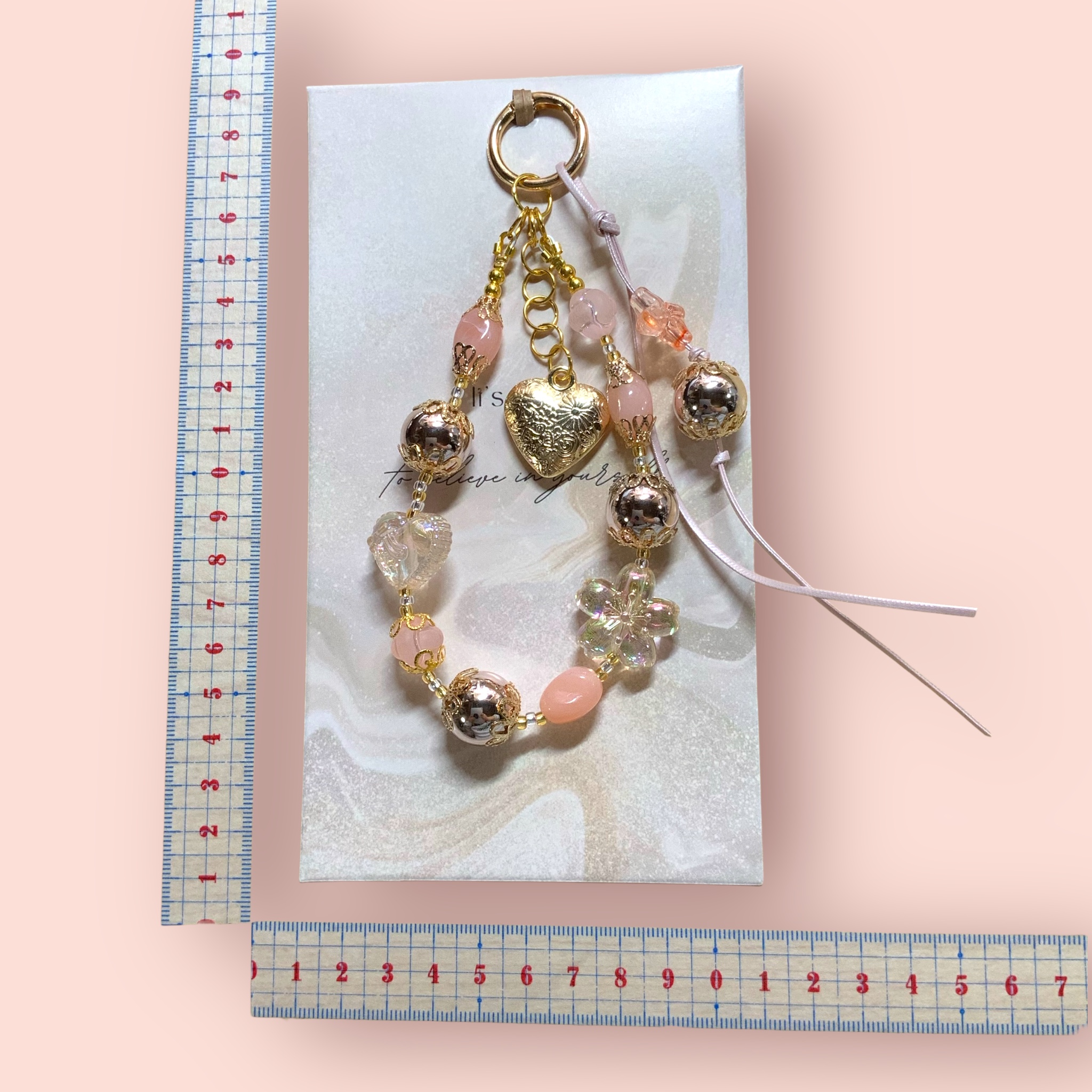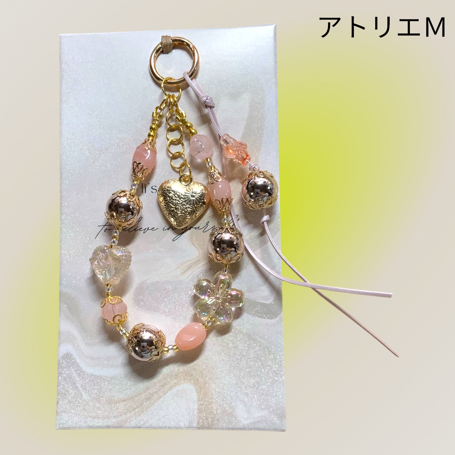 ストラップ ビーズ ピンク×シルバーピンク×ゴールド