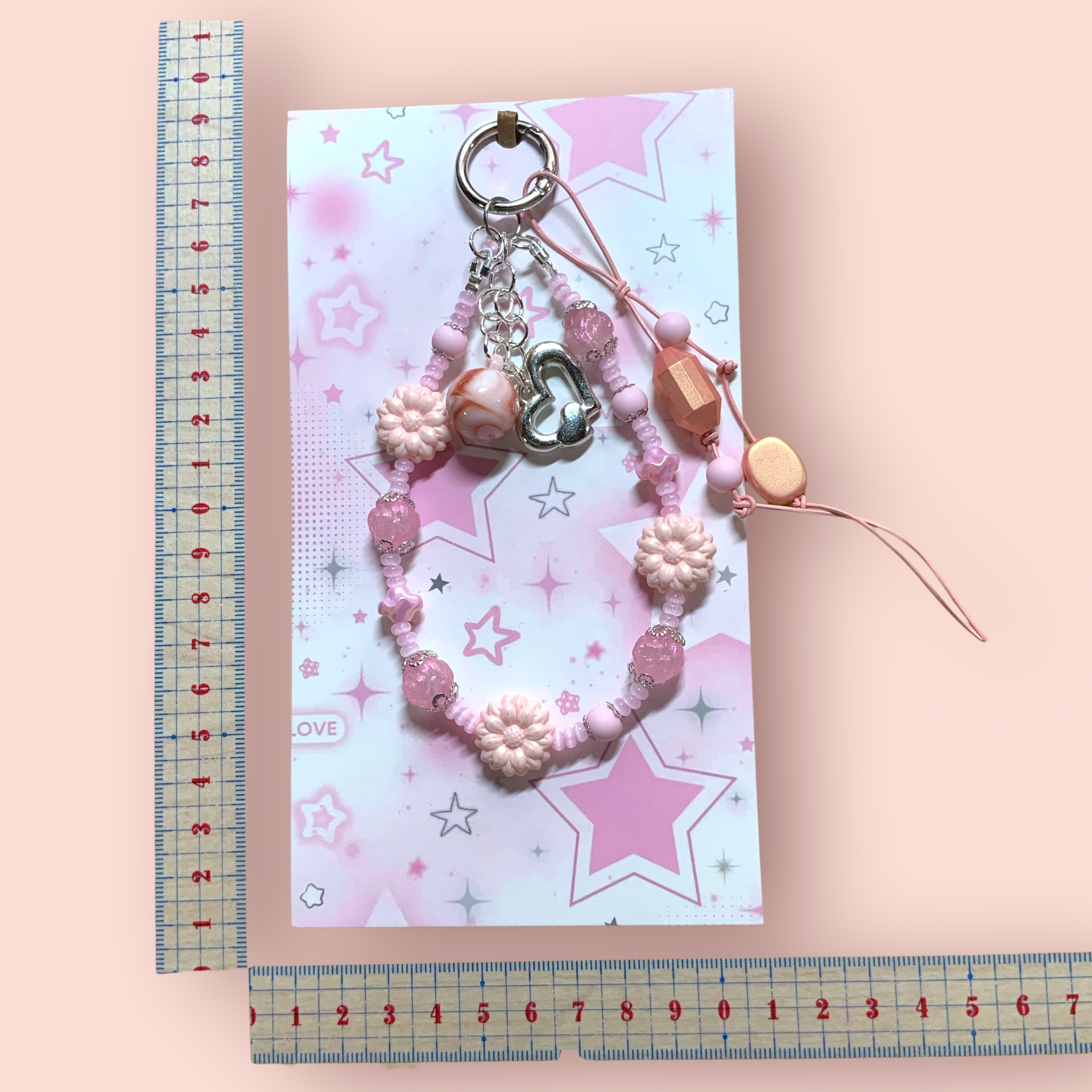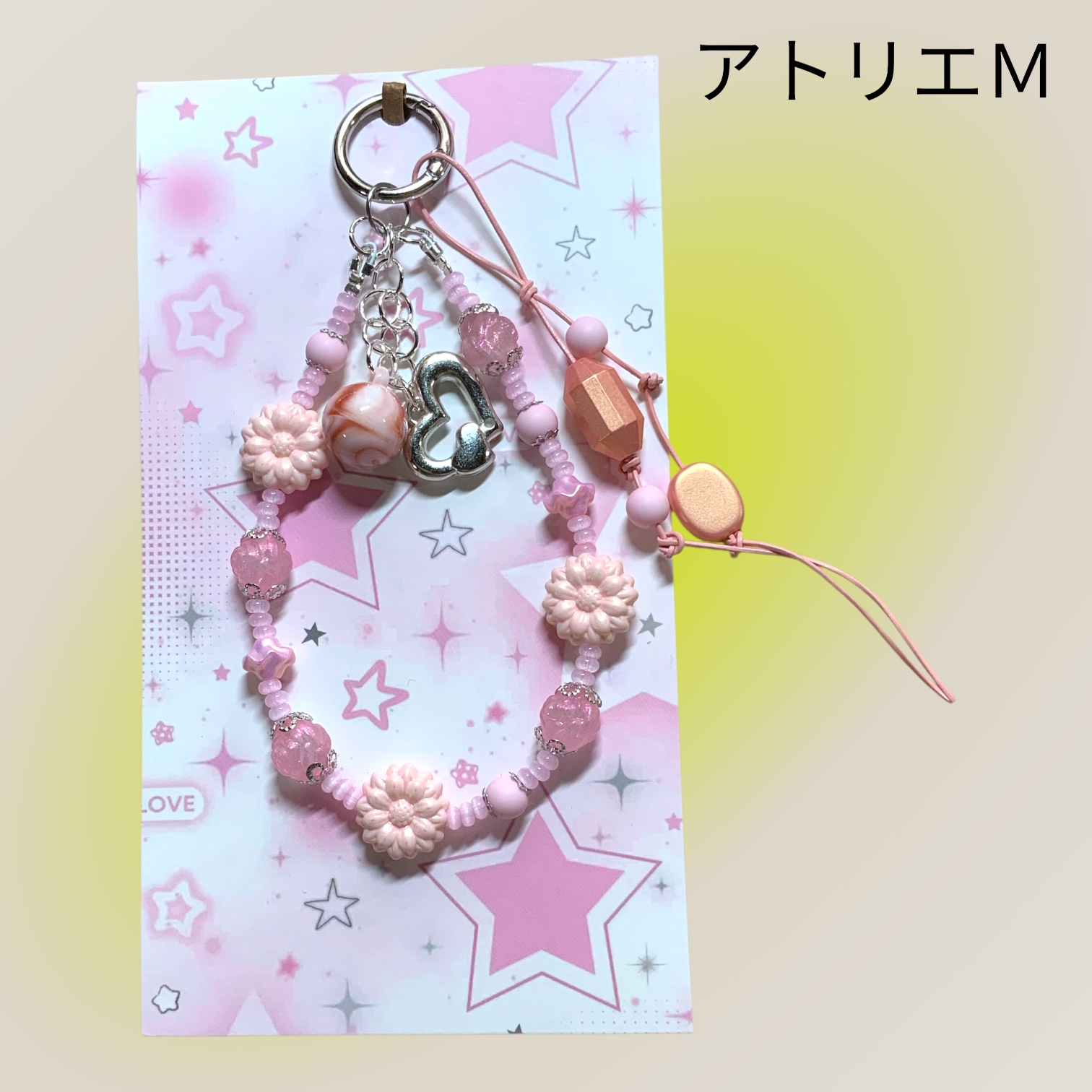 ストラップ   ビーズ  ピンク×シルバー