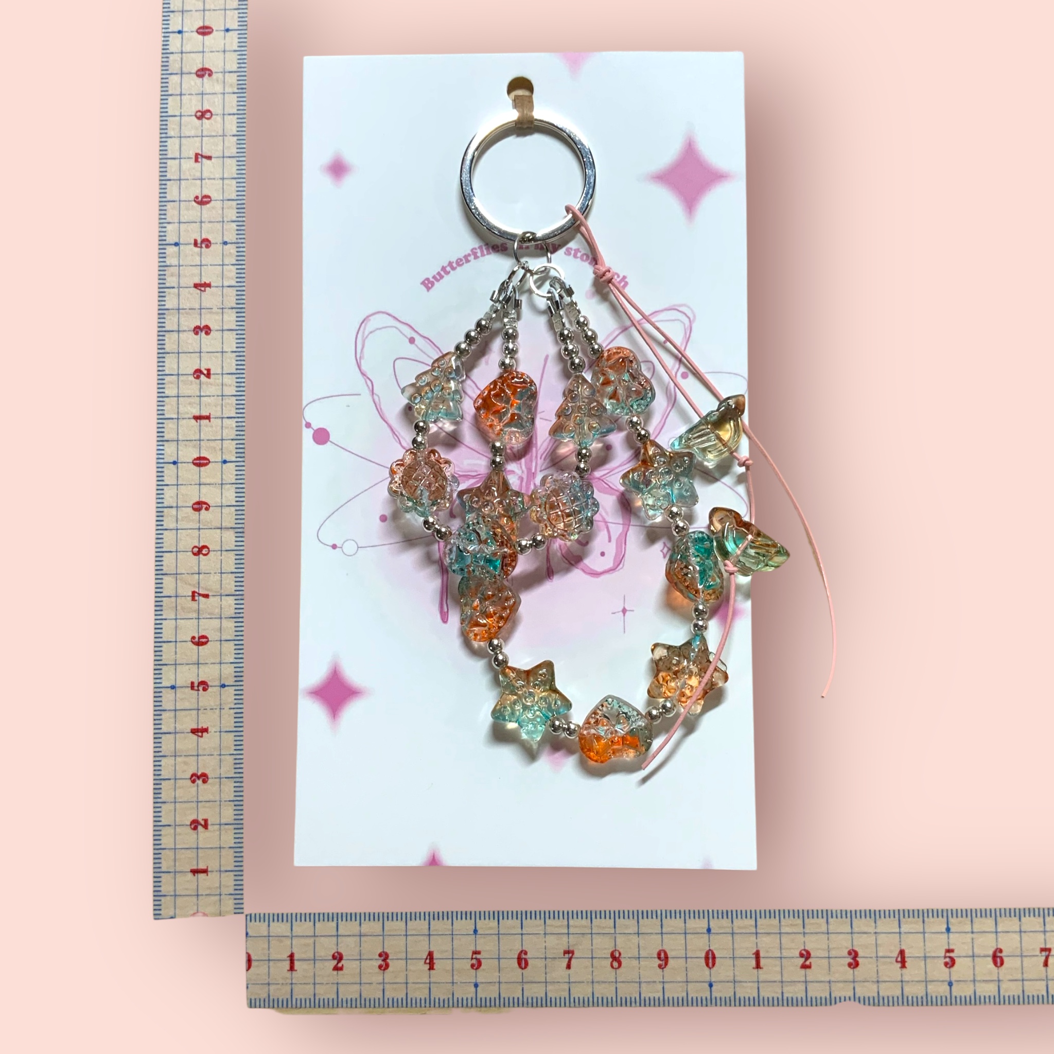 ストラップ ビーズ ブルー×レッド×シルバー 2重