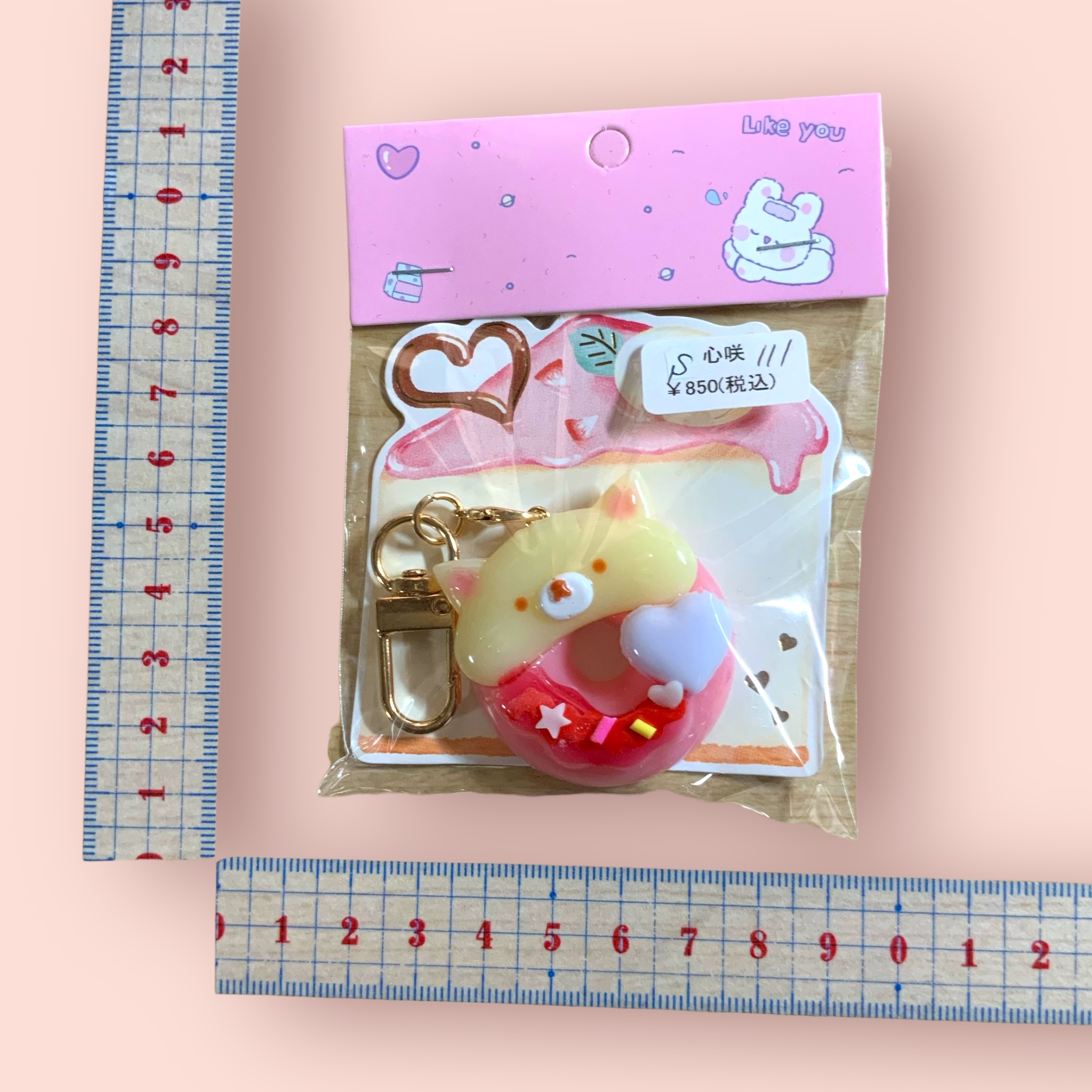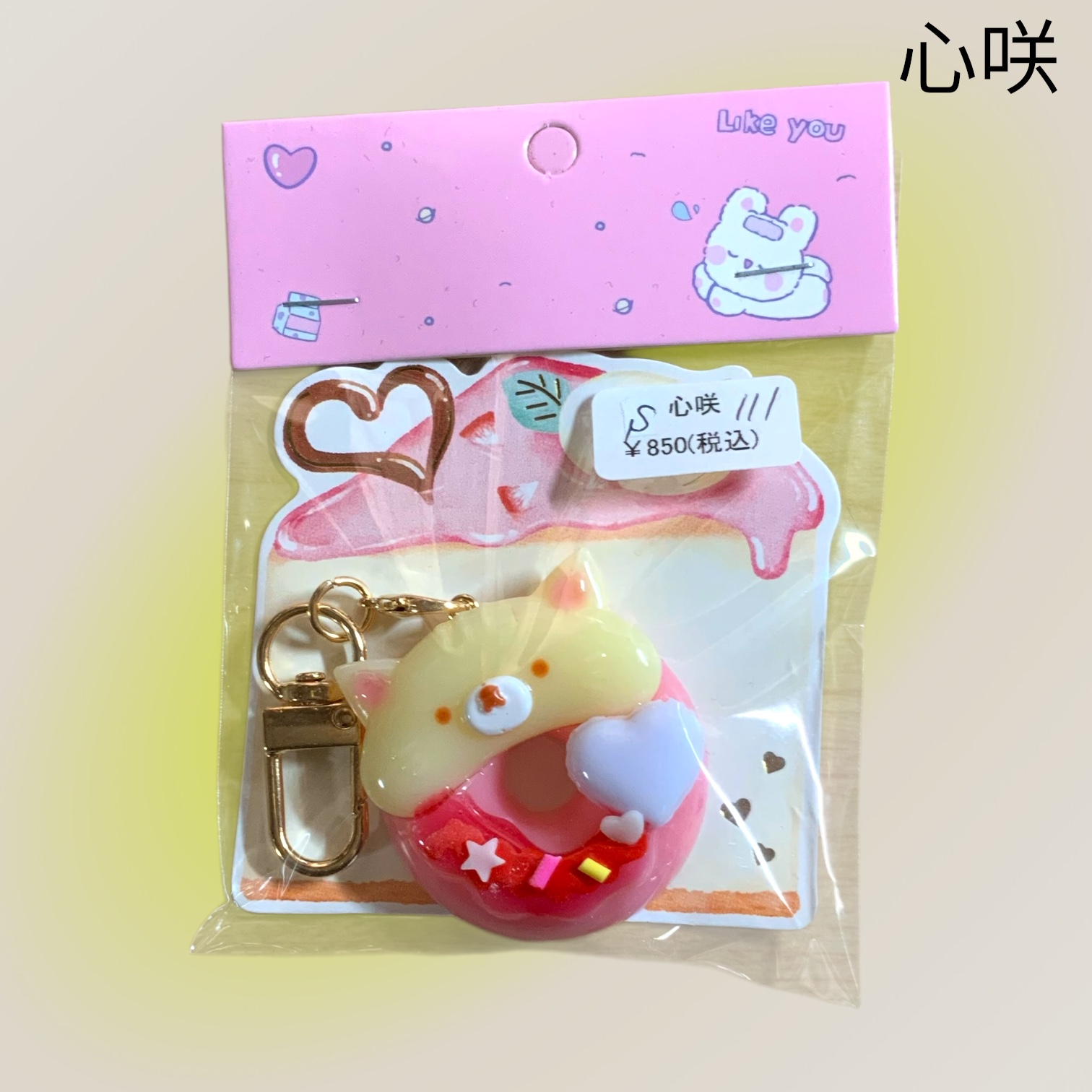 キーホルダー   ドーナツ型   薄イエロー×レッド ネコさん