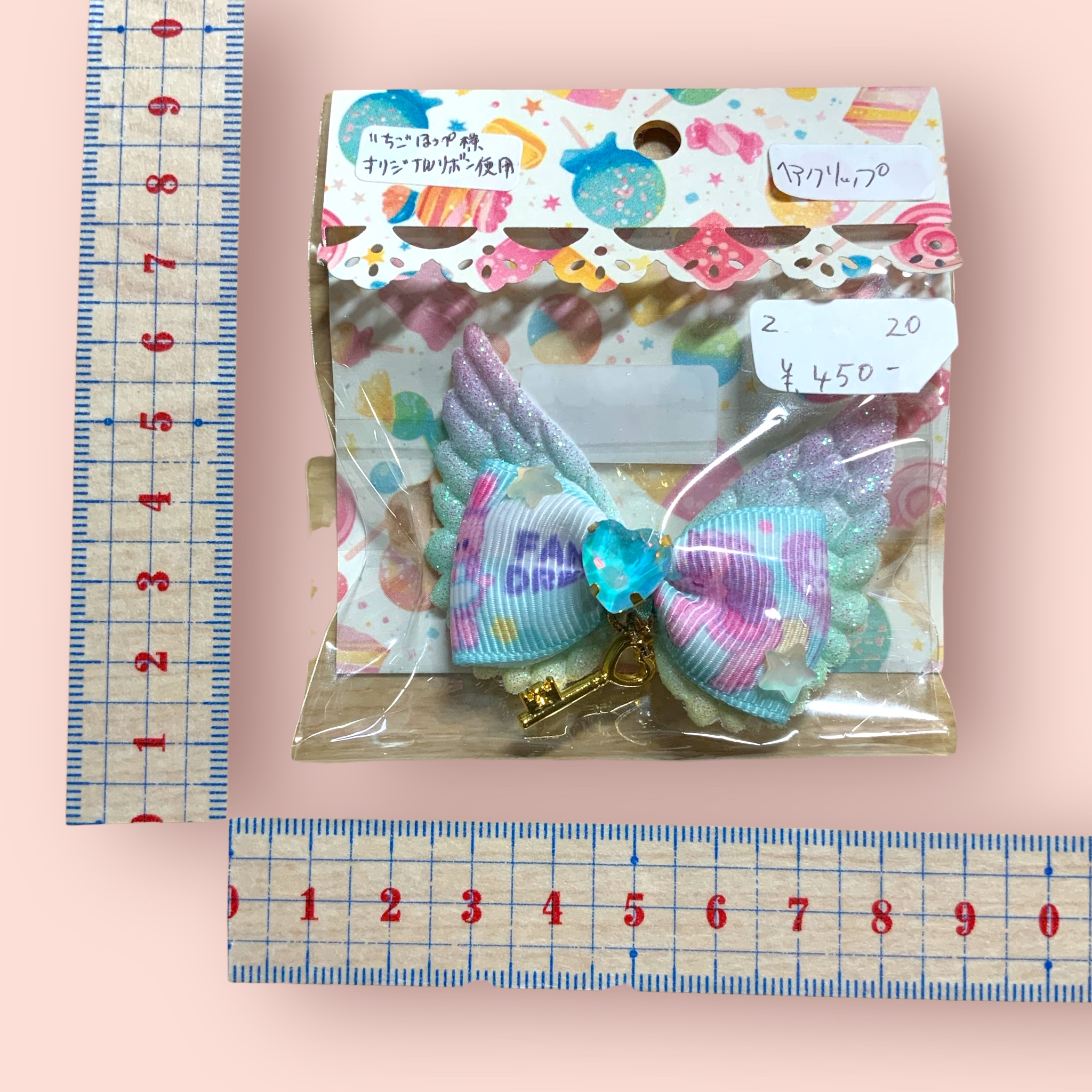 ヘアクリップ  羽  淡いグリーン×鍵チャーム