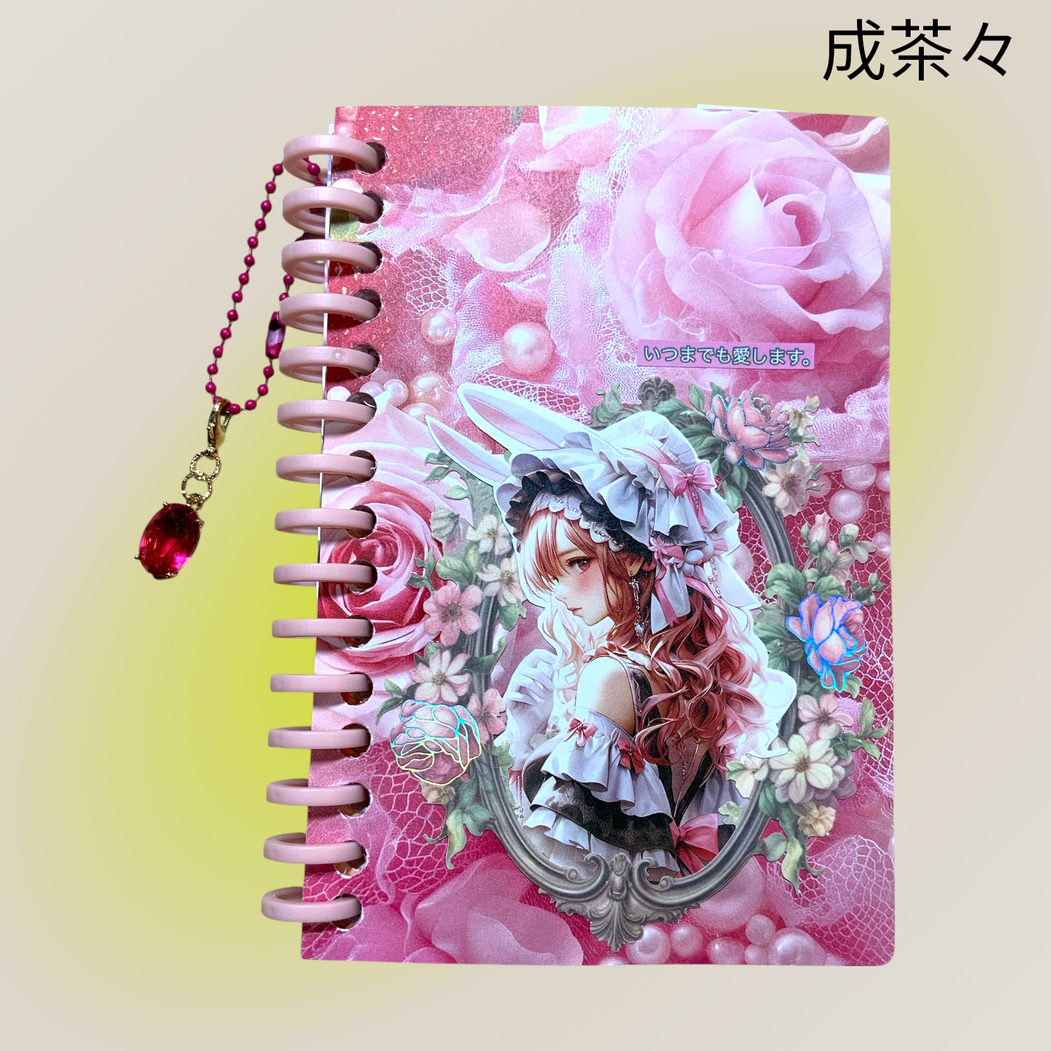 シール帳 コラージュ ピンクバラ チャーム