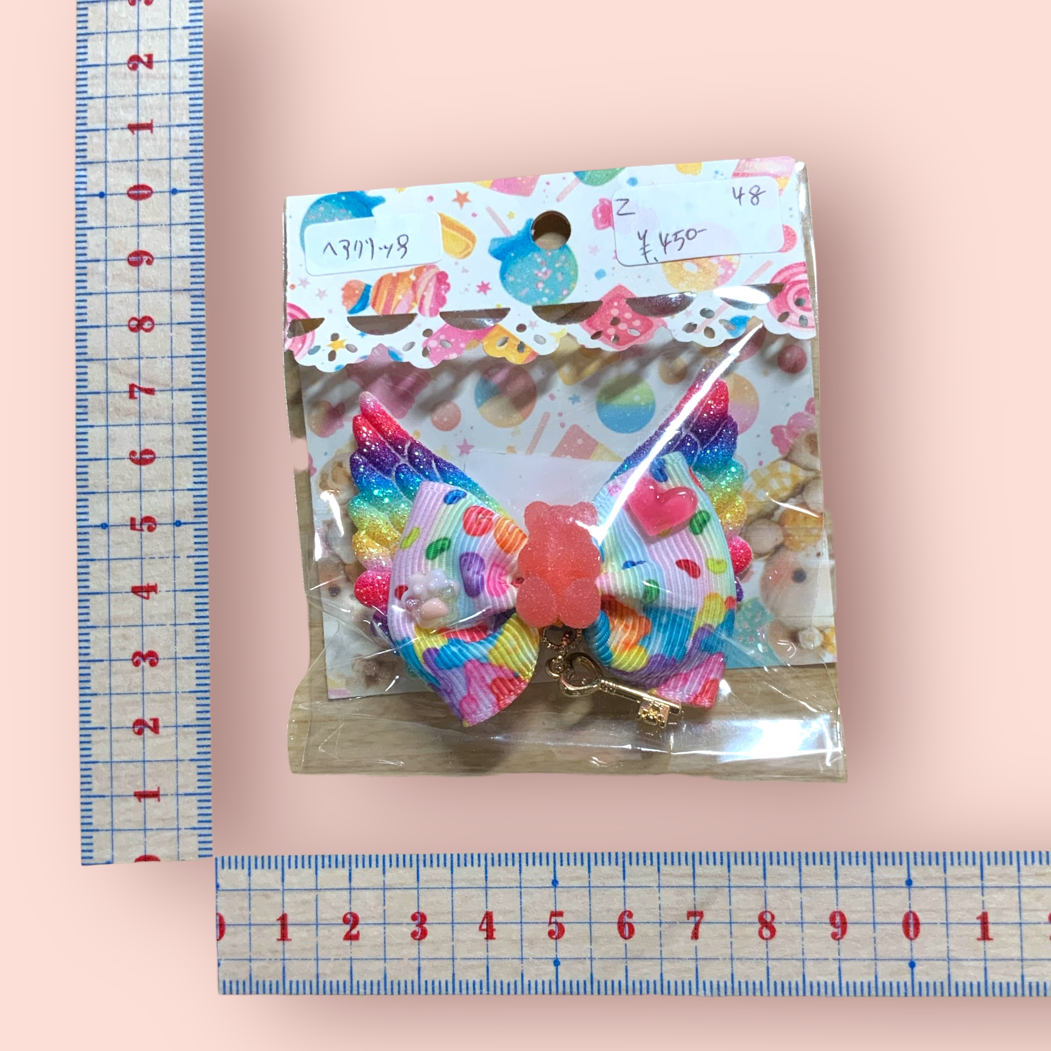 ヘアクリップ レインボー羽 グミベア×カギチャーム