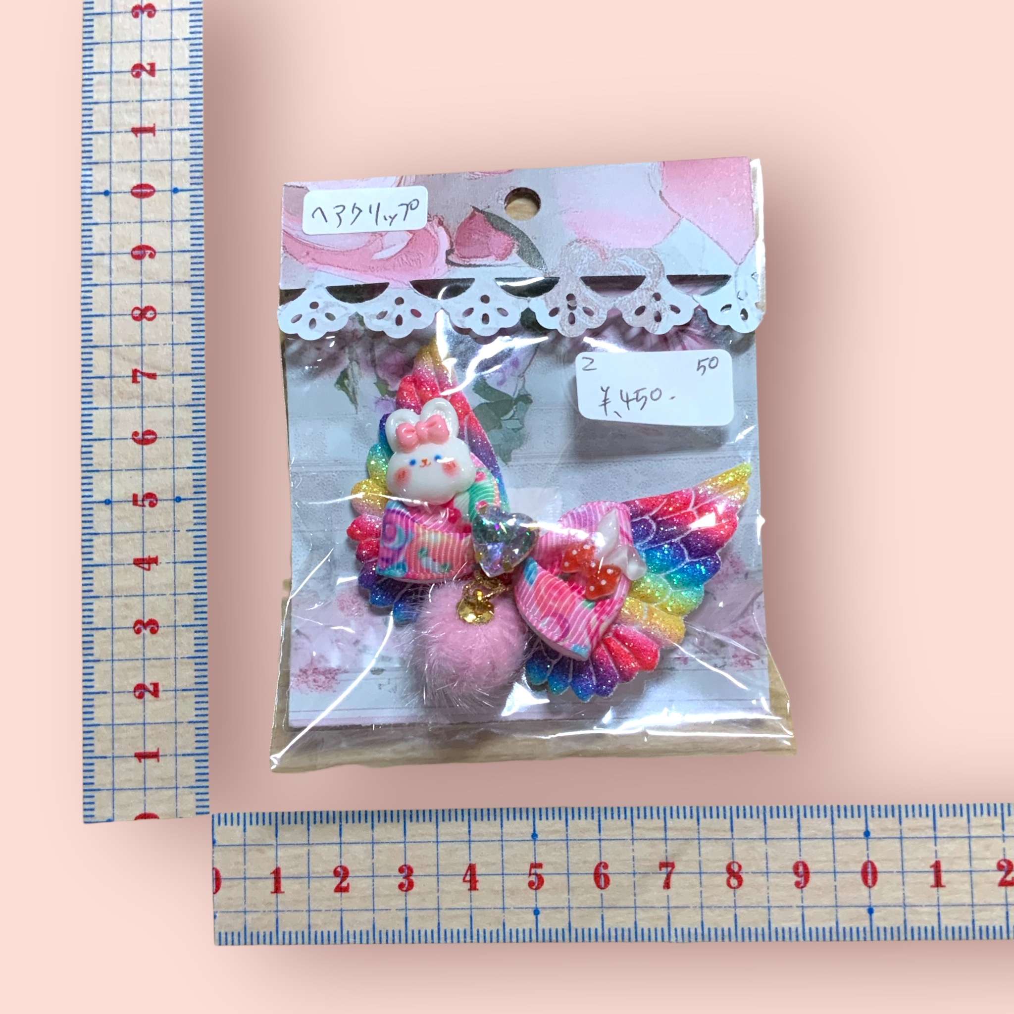 ヘアクリップ レインボー羽 うさぎ×ファーチャーム