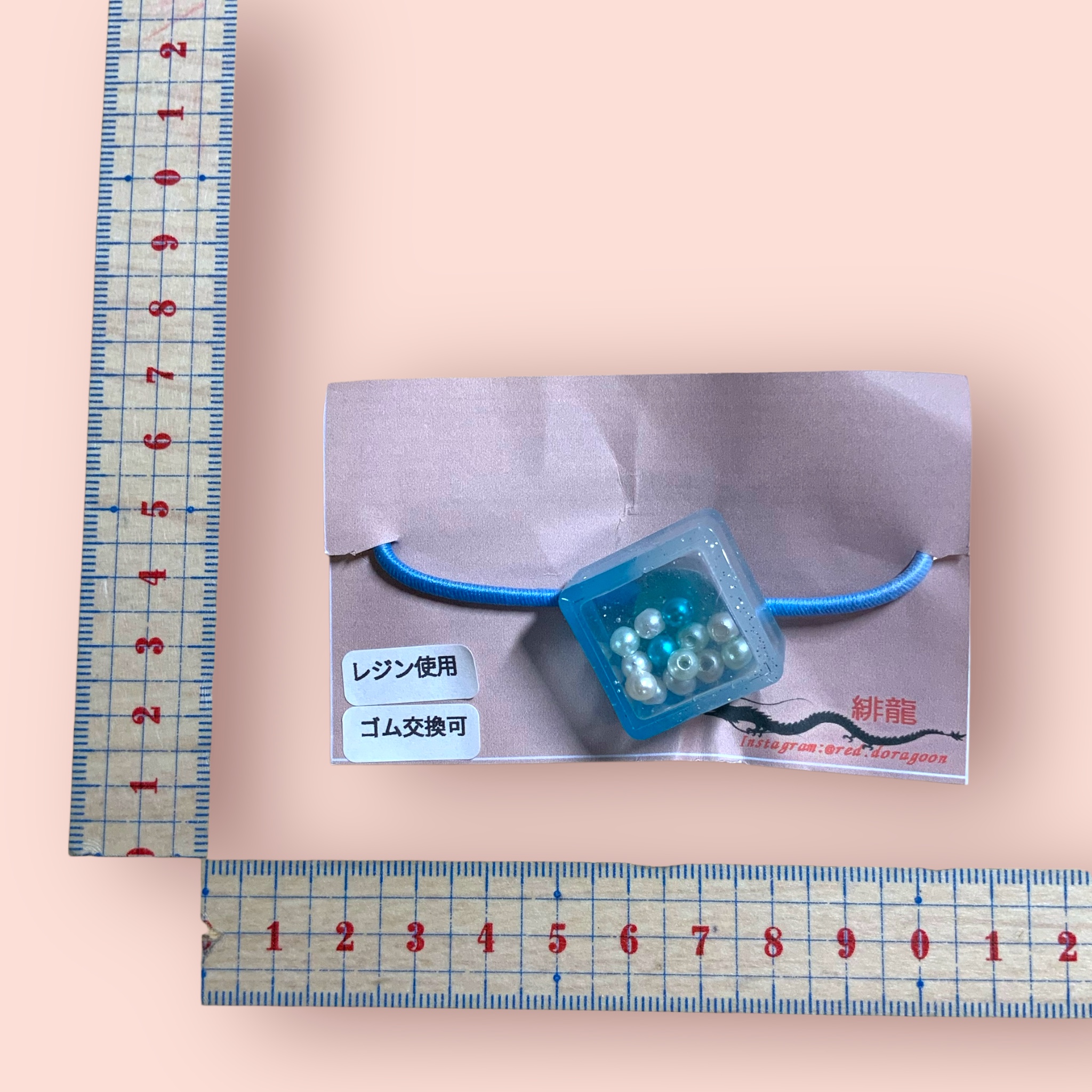 ヘアゴム  ブルー×ホワイト  シャカシャカ