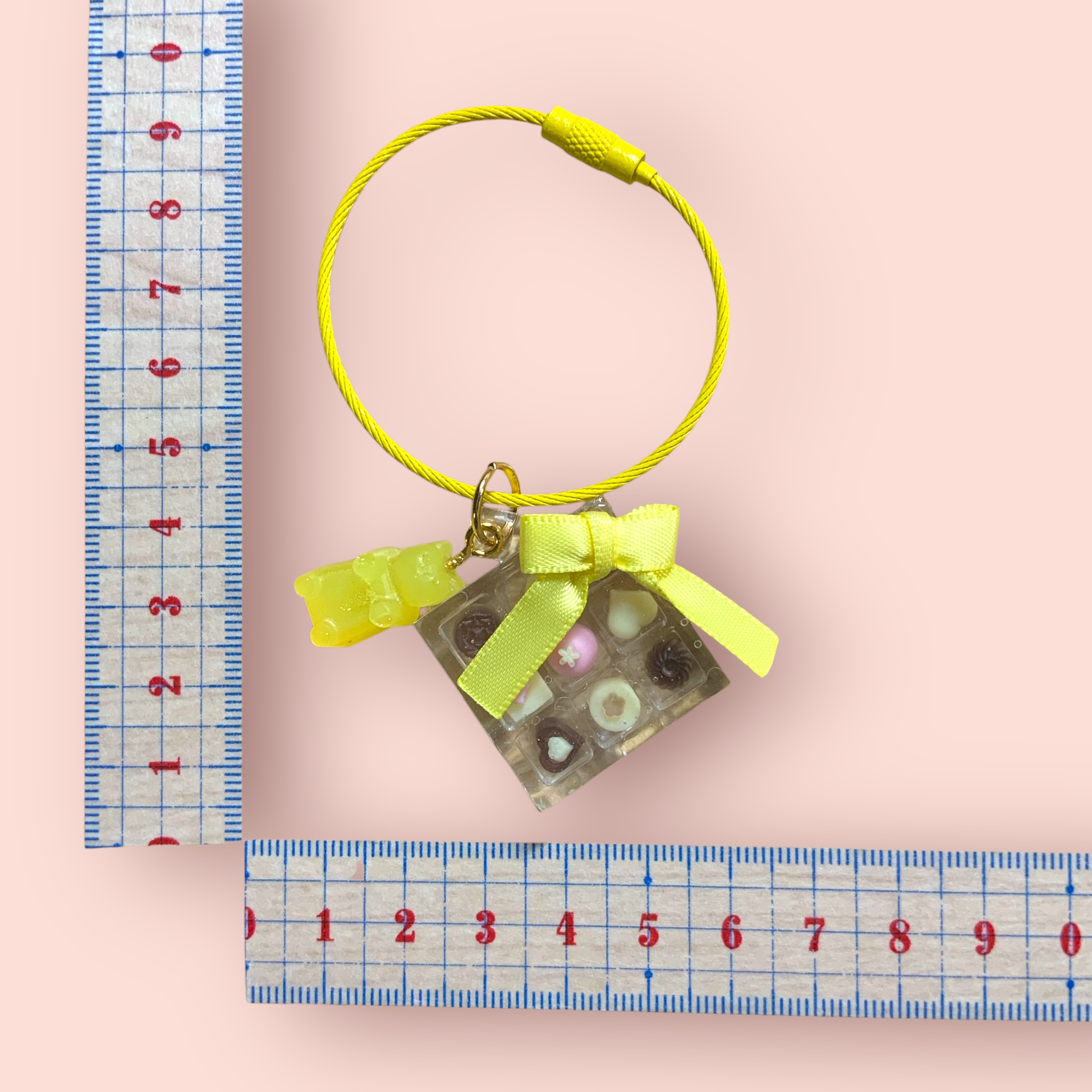 キーリング 四角形チョコ箱 リボン×グミベア付き