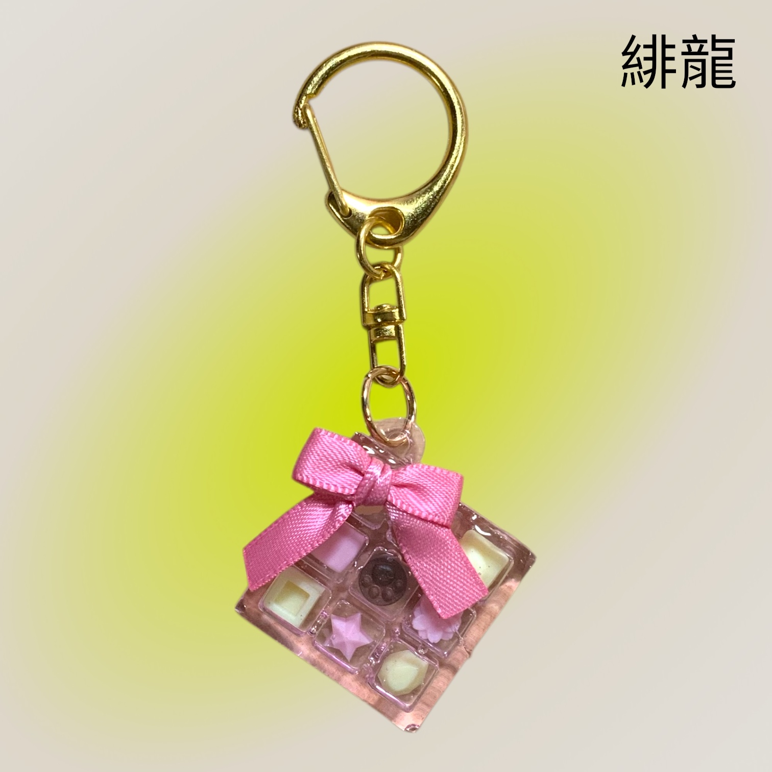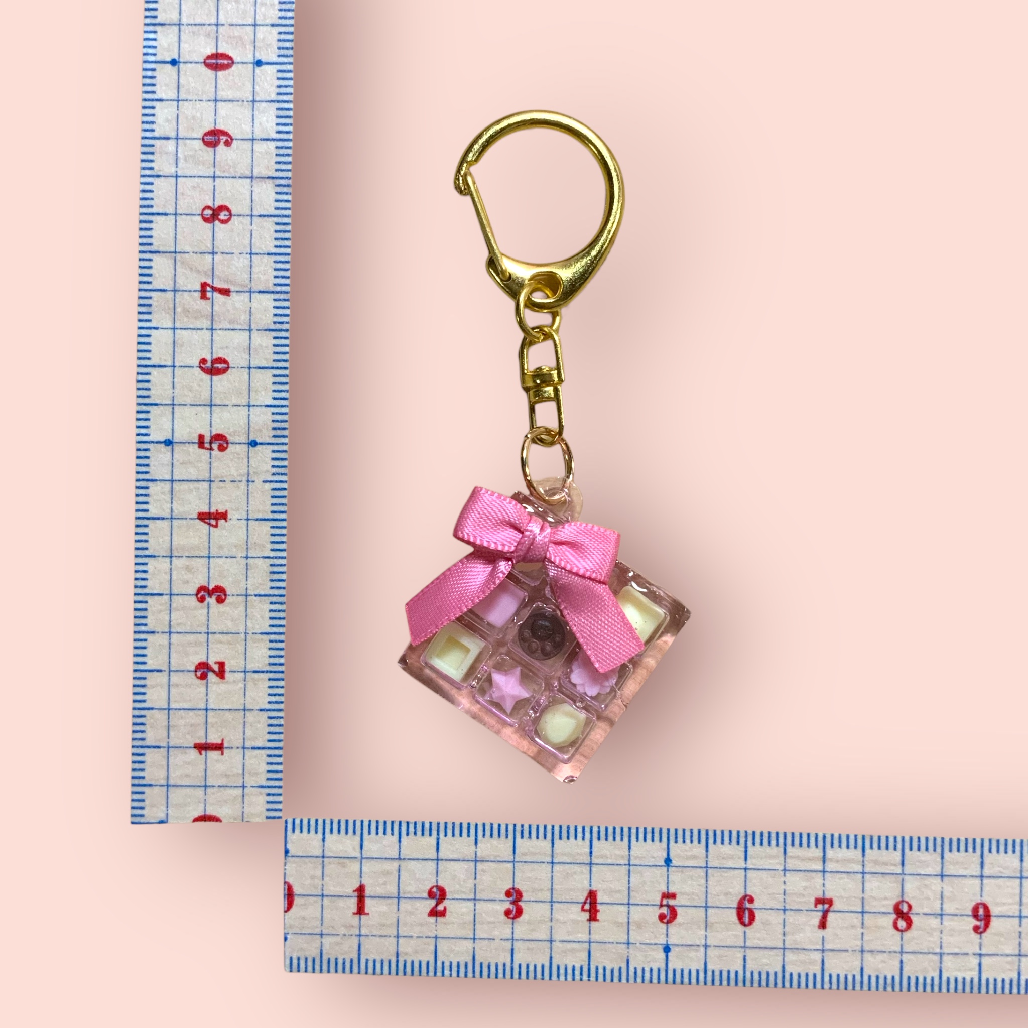 キーホルダー  四角形チョコ箱  リボン付き