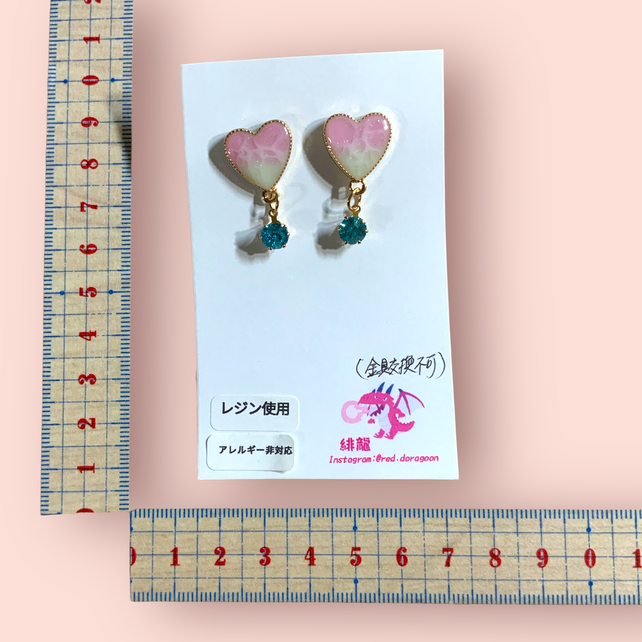 ピアス ハート型 ピンク×グリーン 波目