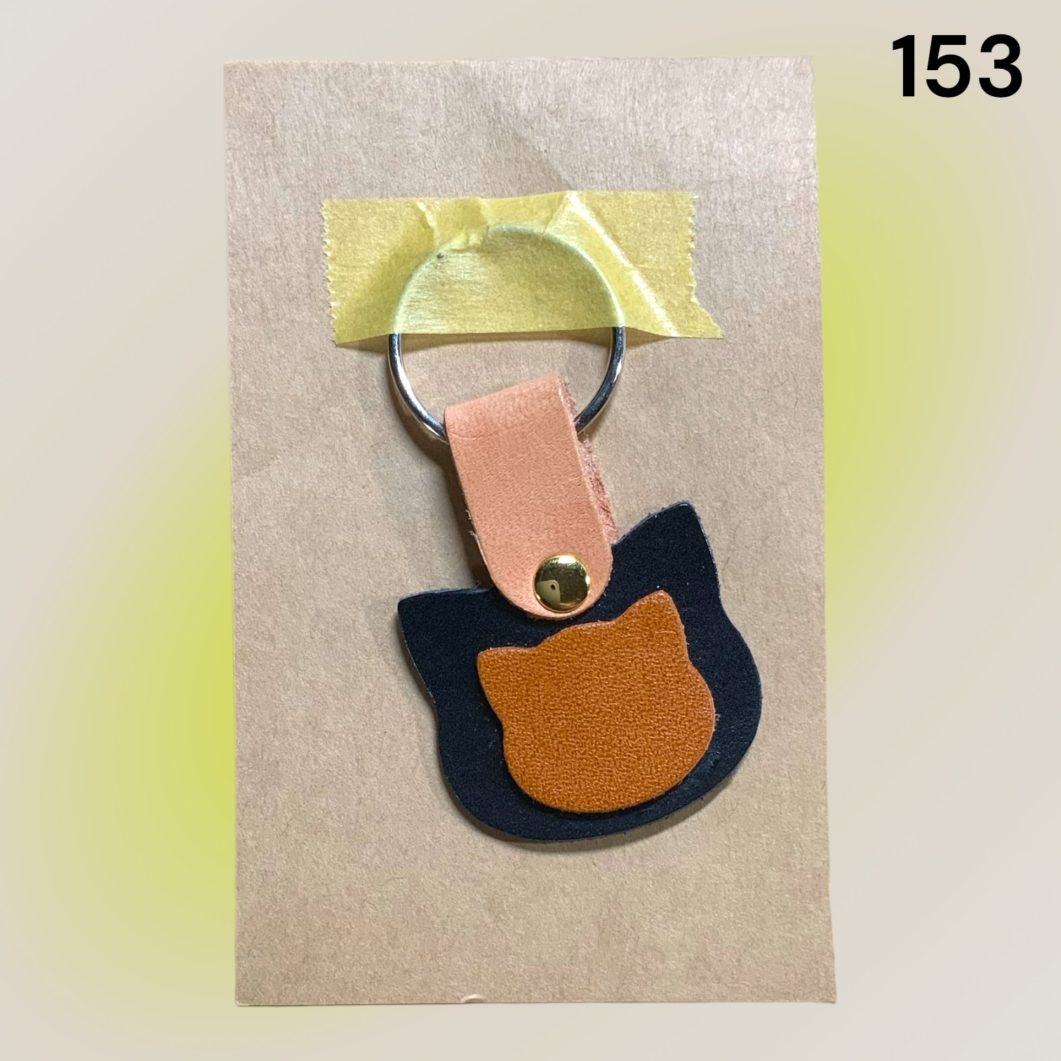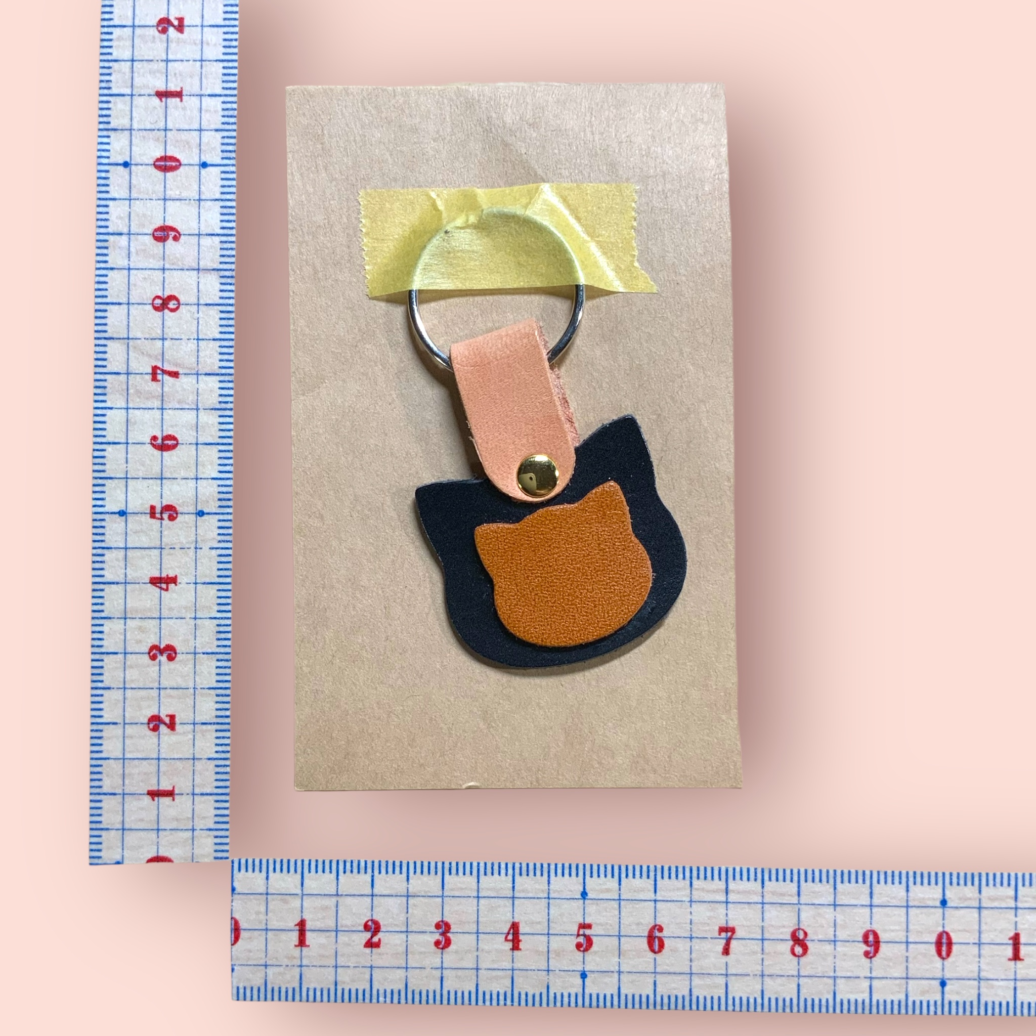 キーホルダー 猫 革タグ ブラック×ブラウン
