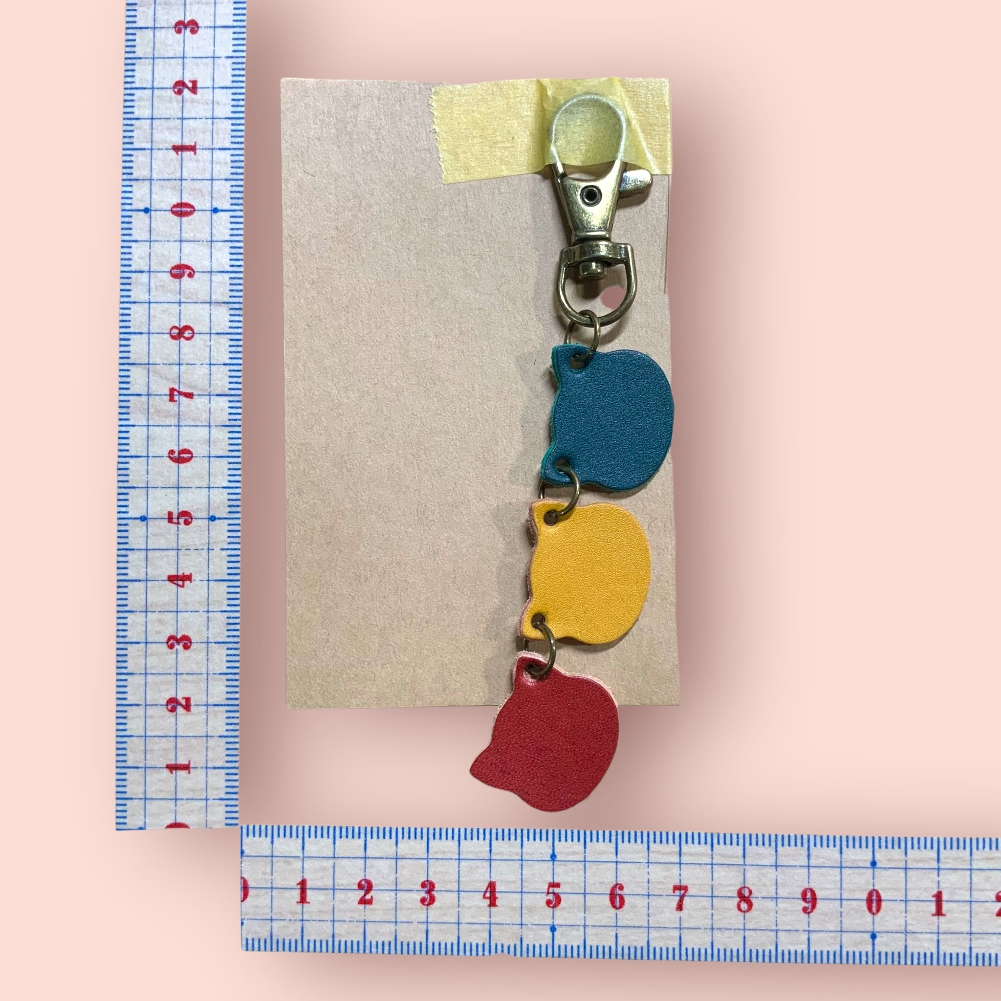 キーホルダー 革タグ3連ねこちゃん