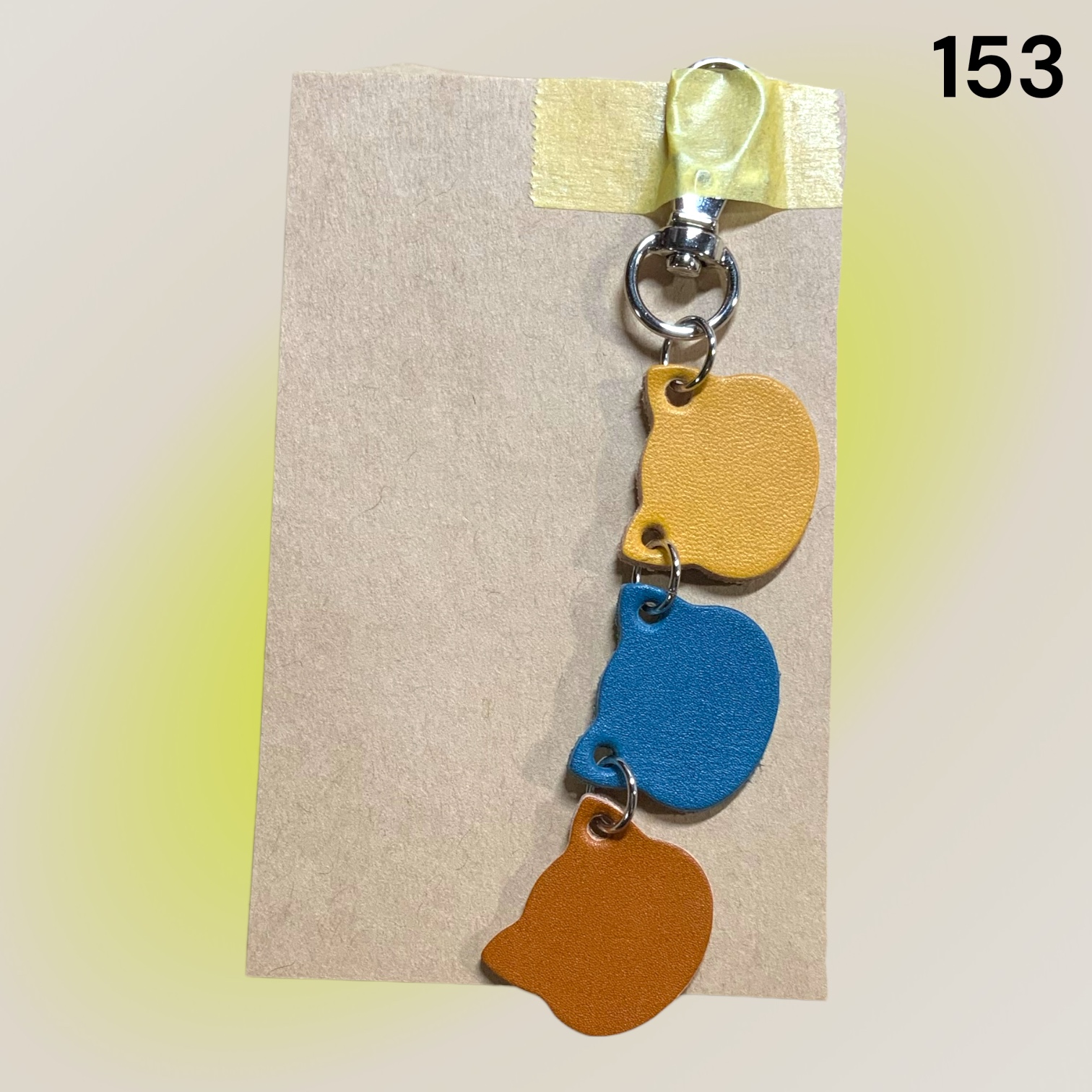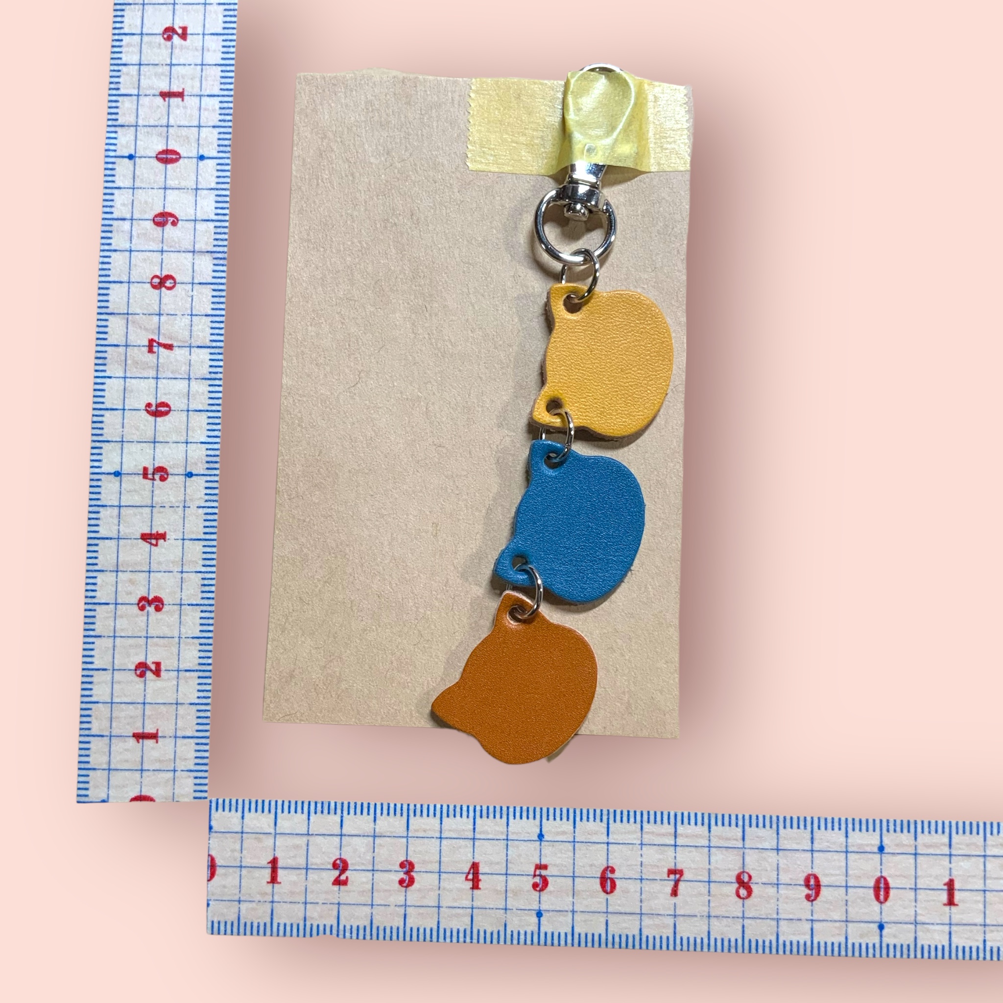 キーホルダー   革タグ3連ねこちゃん