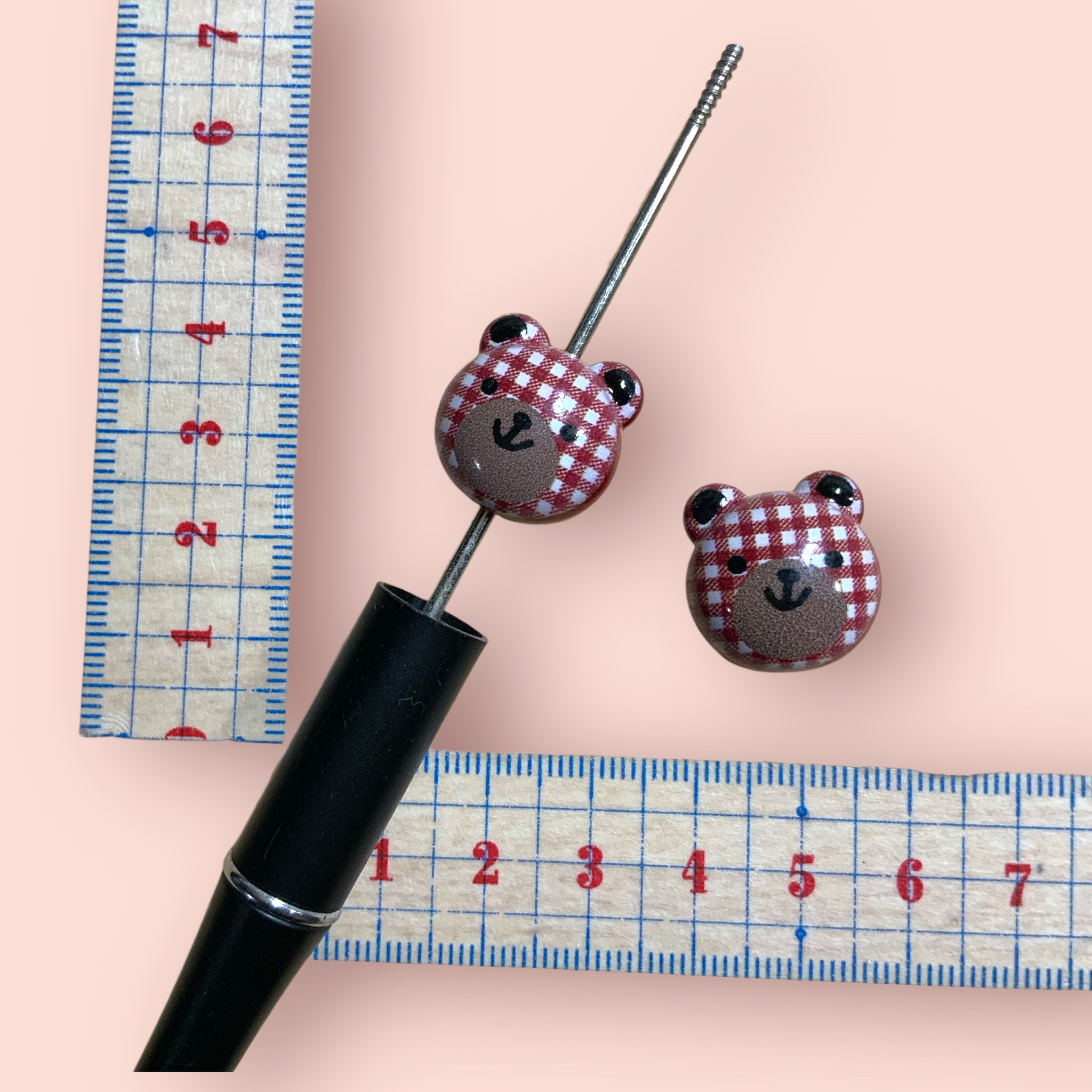 カスタムビーズ チェックくまさん レッド
