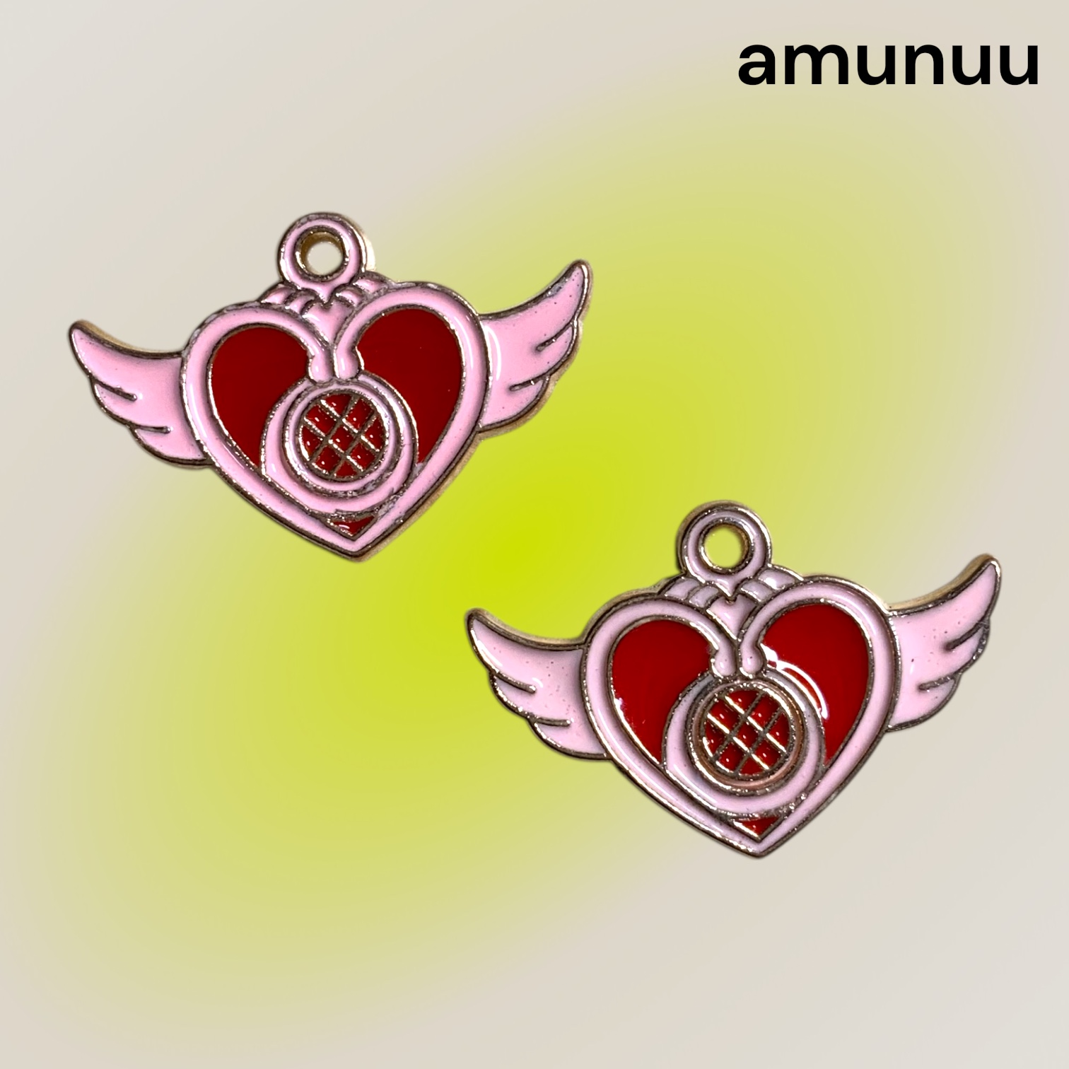 チャーム   ハート×羽   レッド×ピンク
