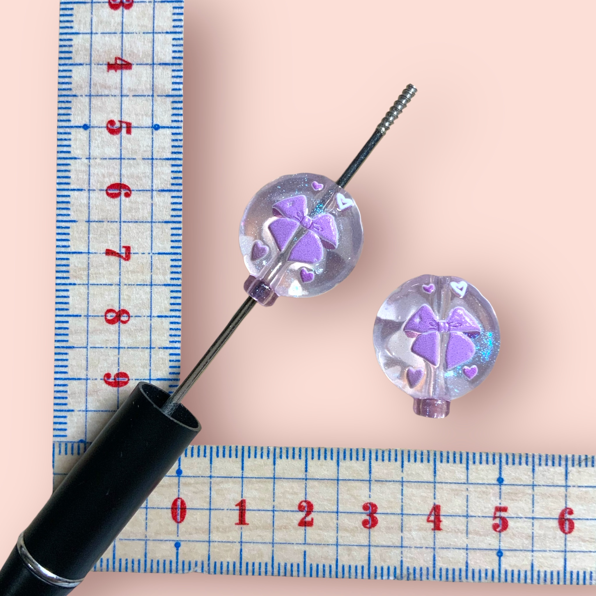 カスタムビーズ   バルーン型  クリアパープル リボン