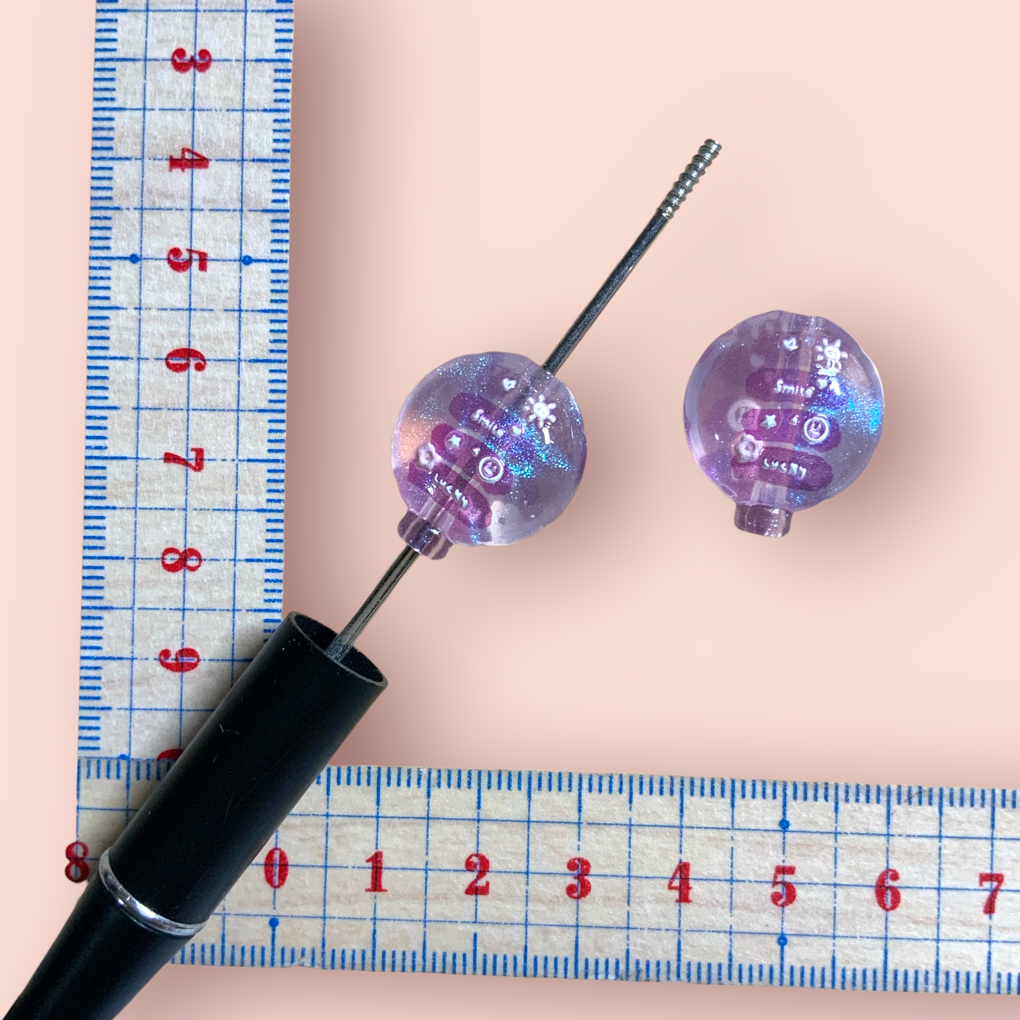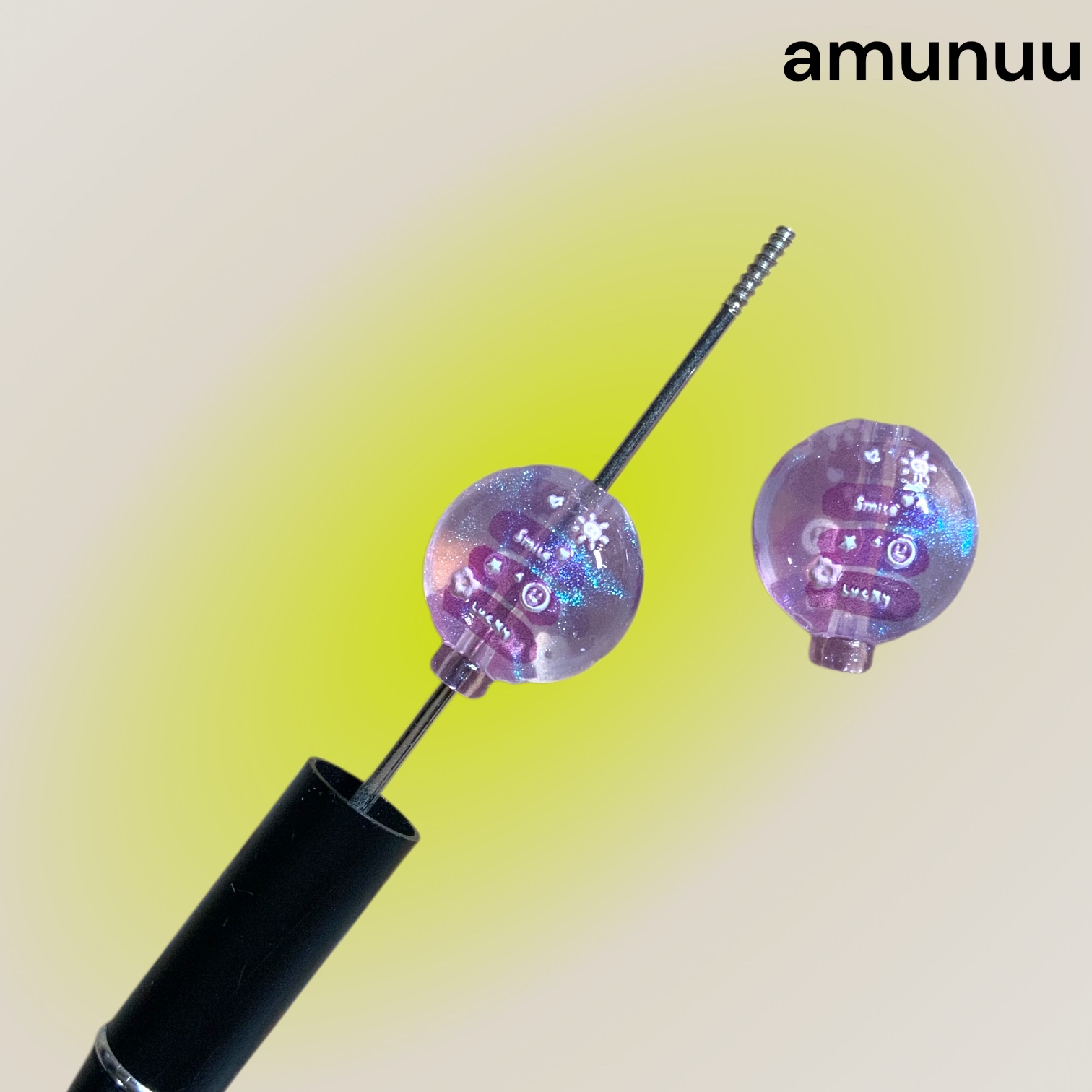 カスタムビーズ バルーン型 クリアパープル 文字