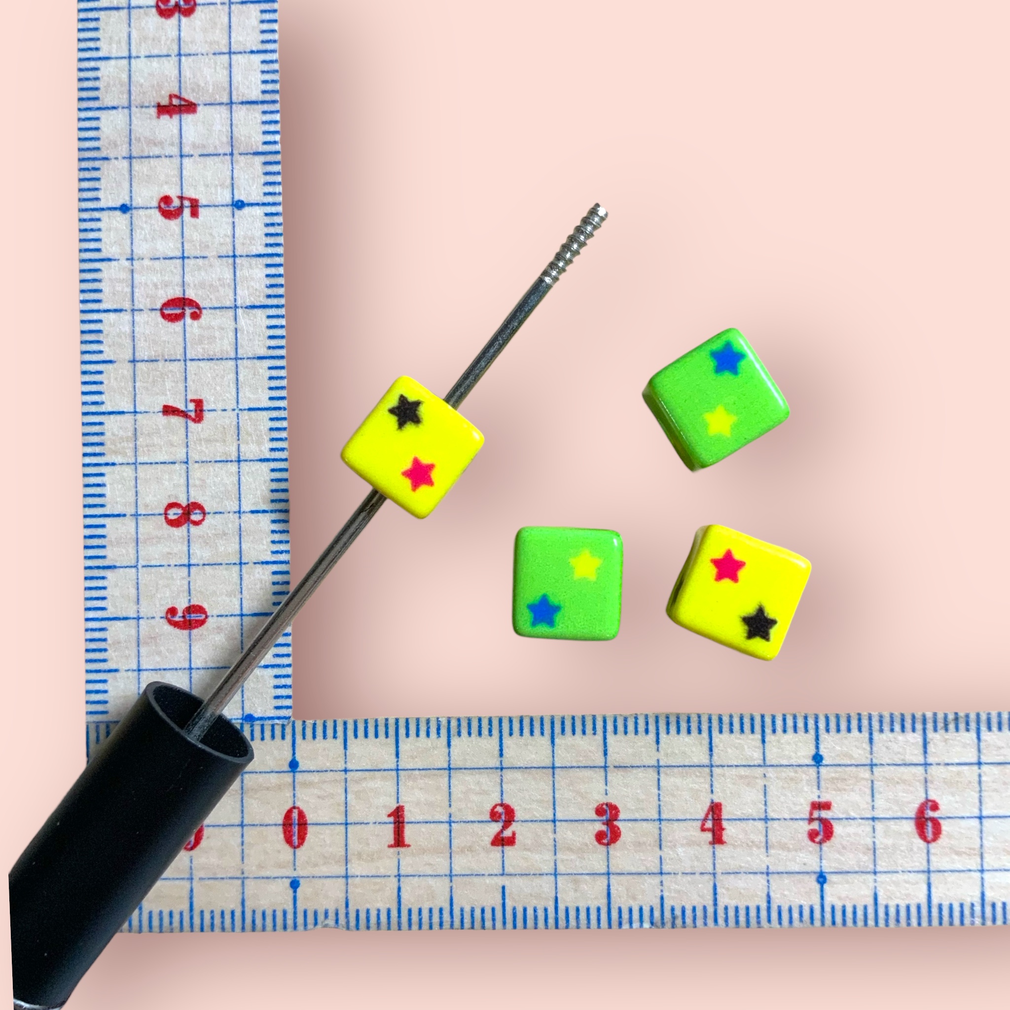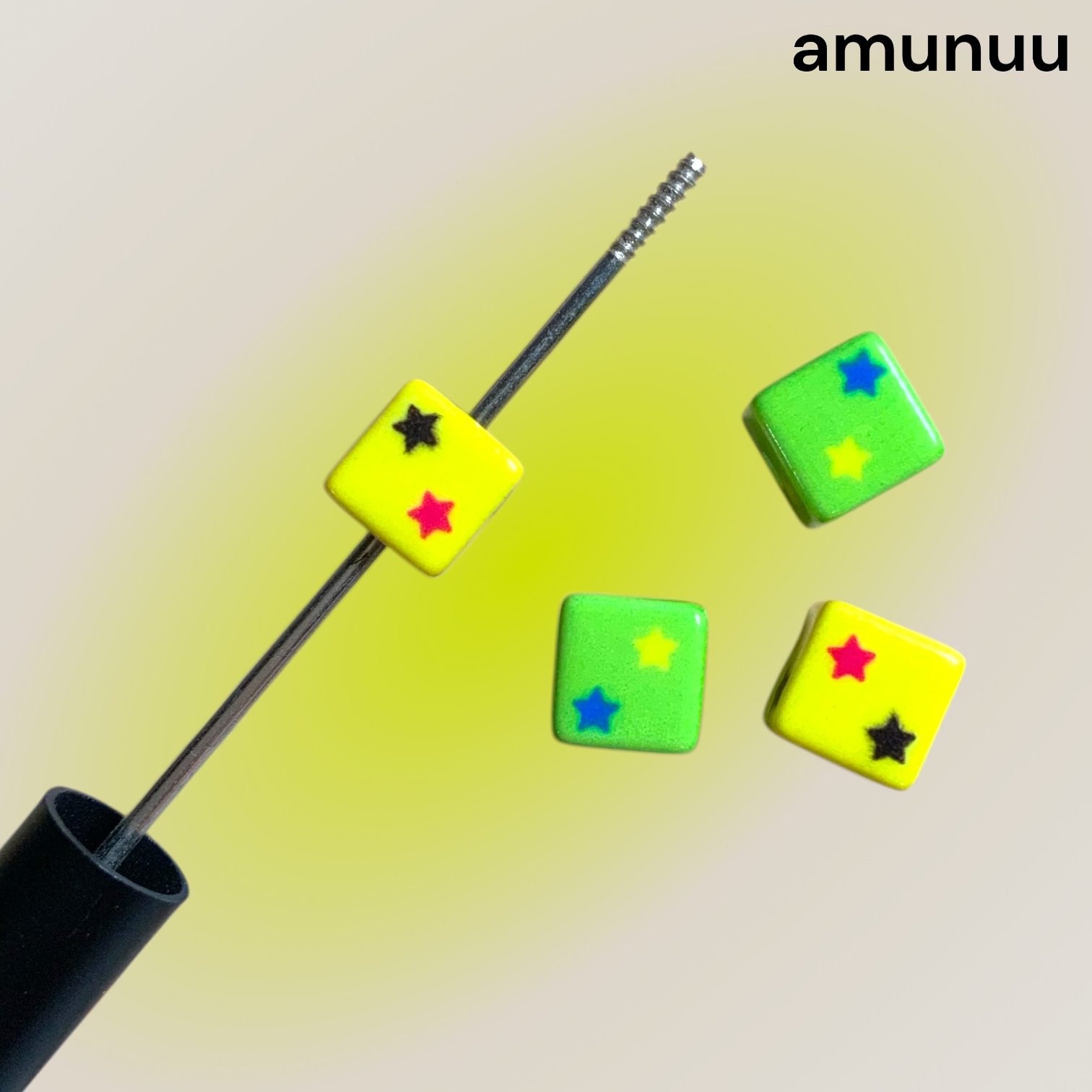 カスタムビーズ キューブ 星柄 イエロー×グリーン