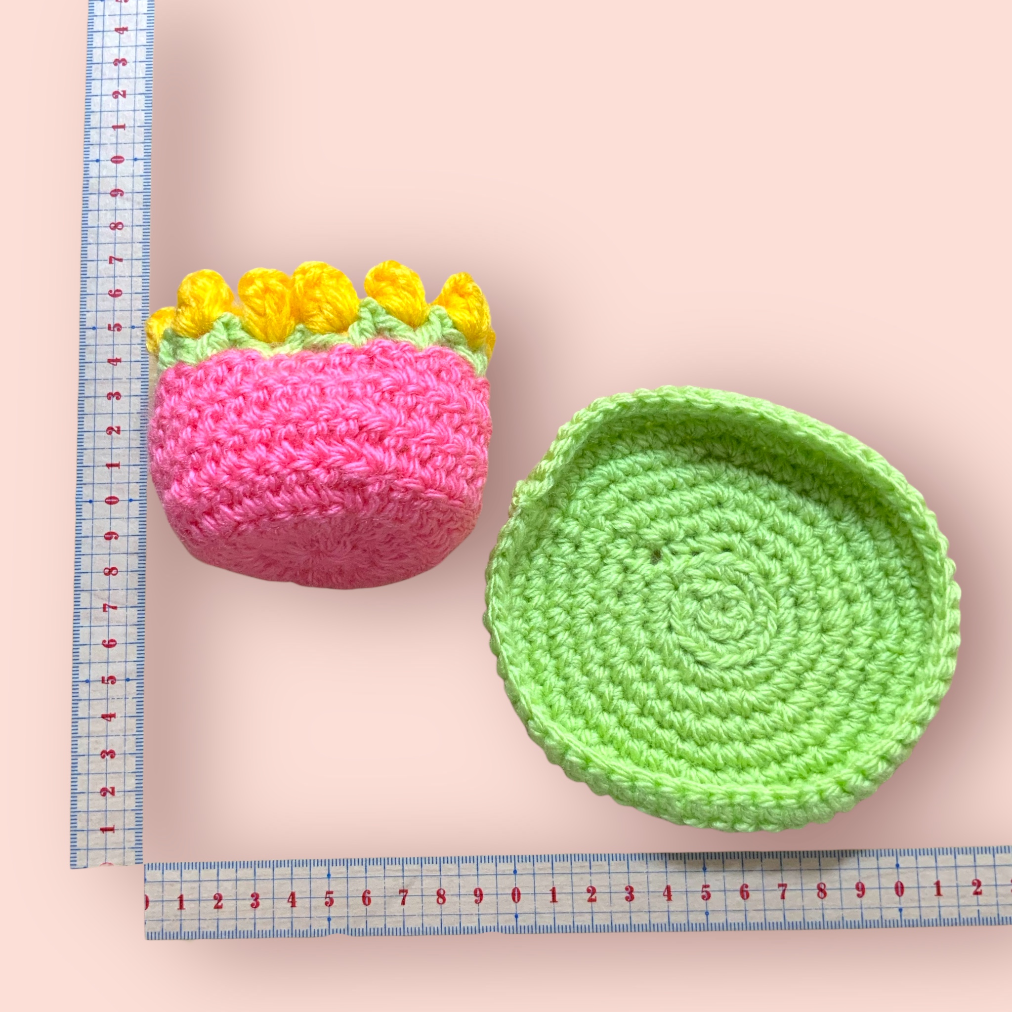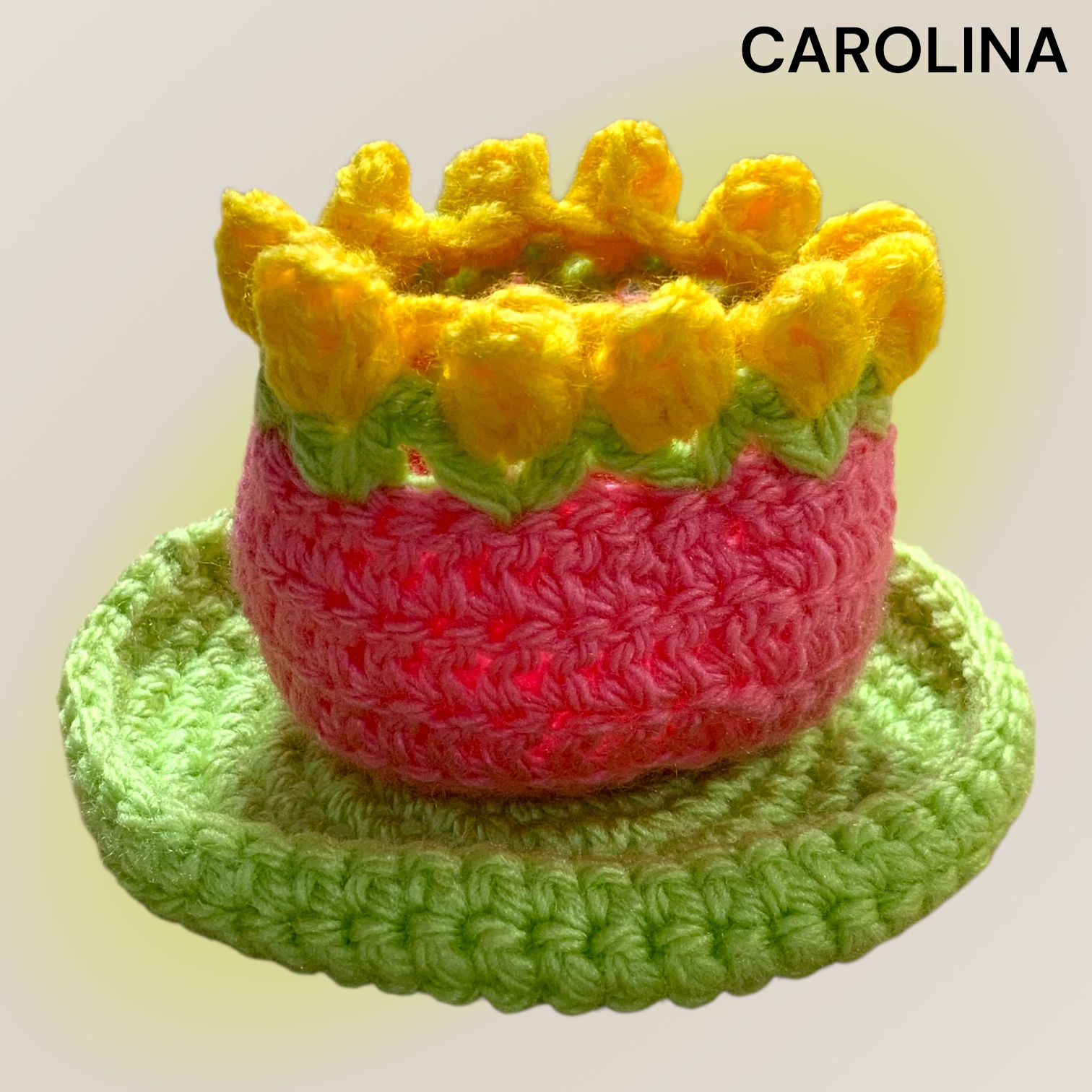皿付き小物入れ お皿グリーン ピンク×チューリップ