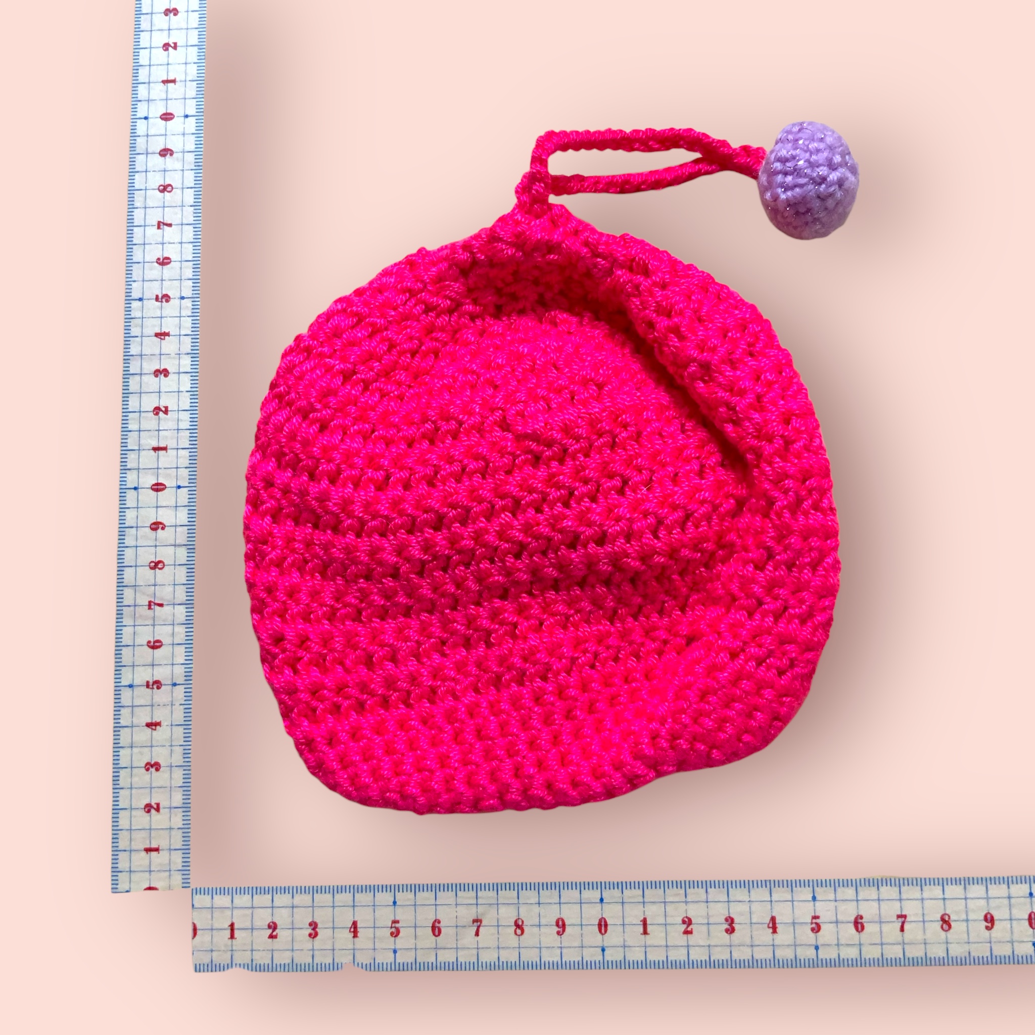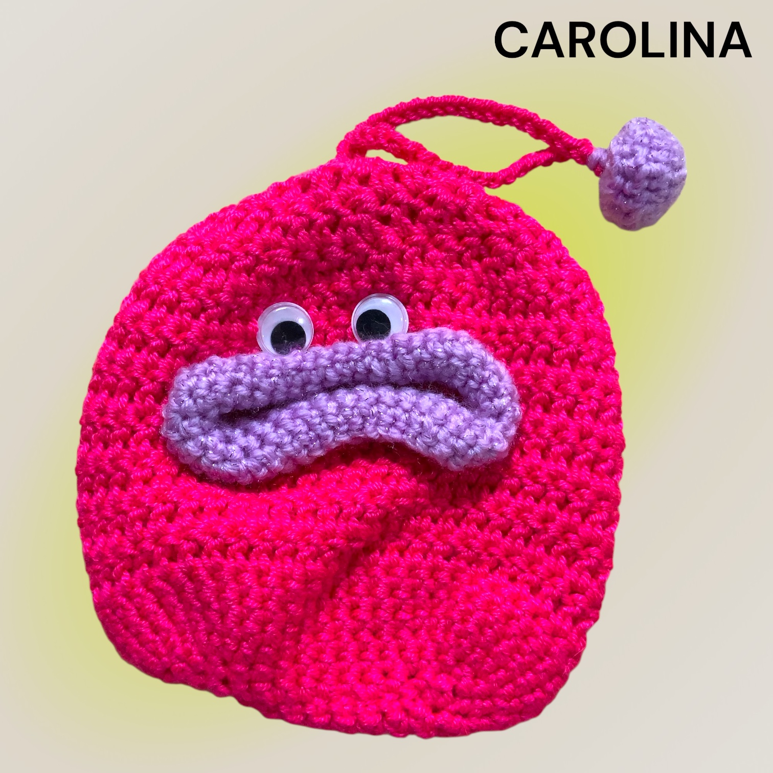 カギ巾着  ピンク   目玉付