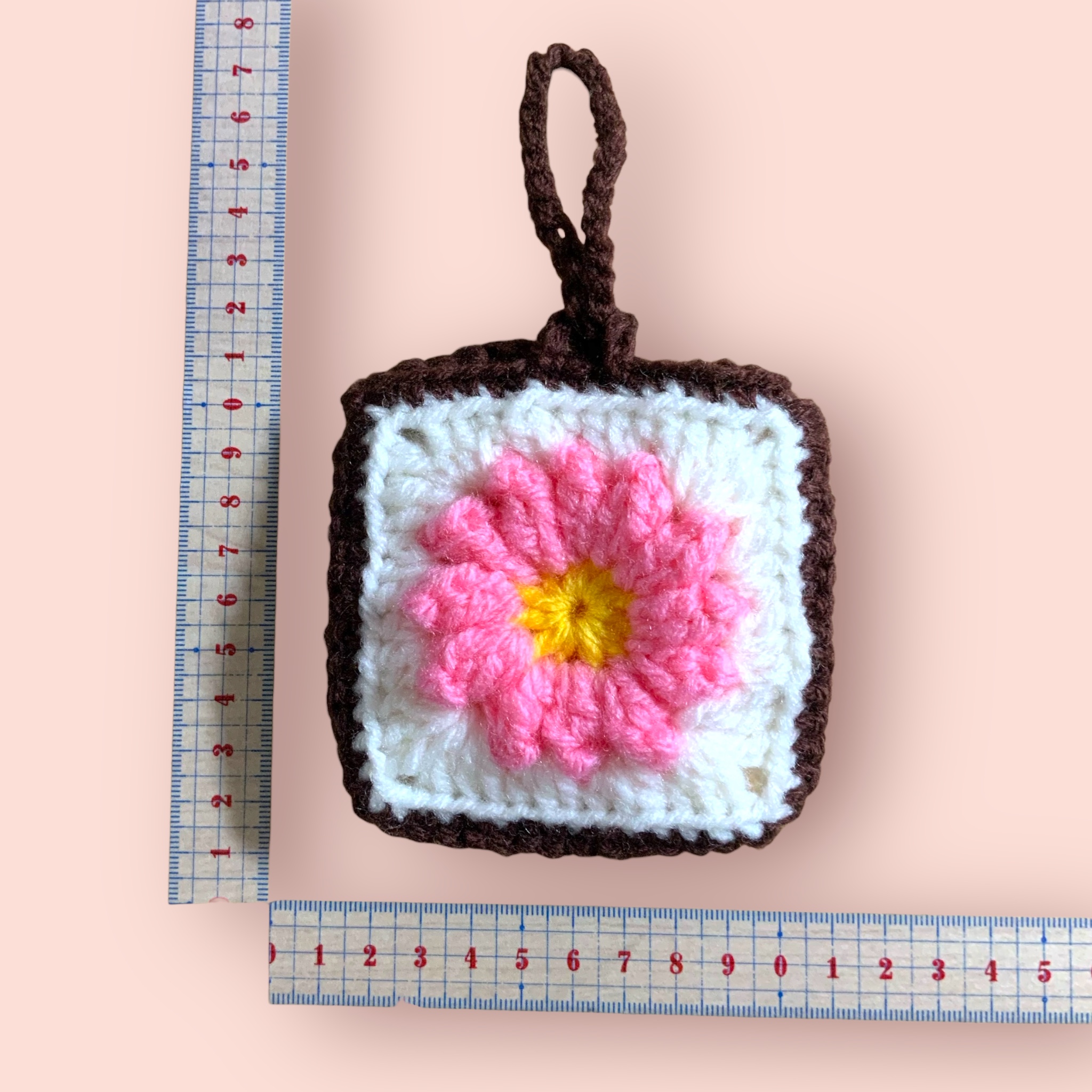 小物入れ ピンクお花 白×茶