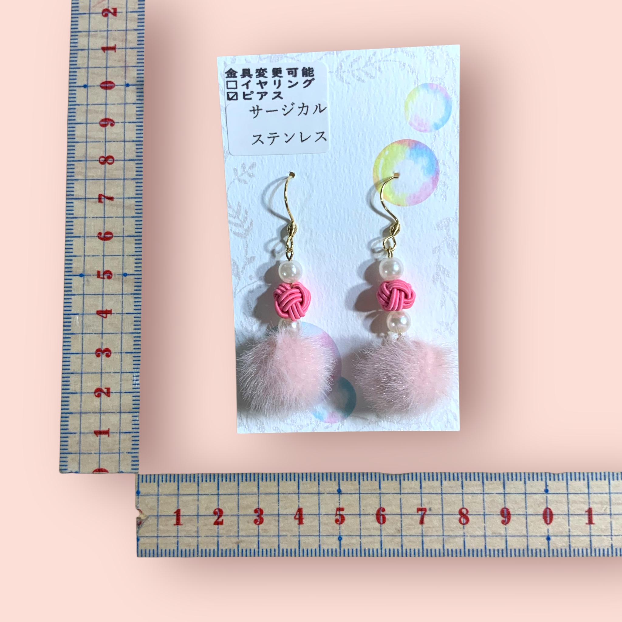 ピアス 水引き×パール×ポンポン