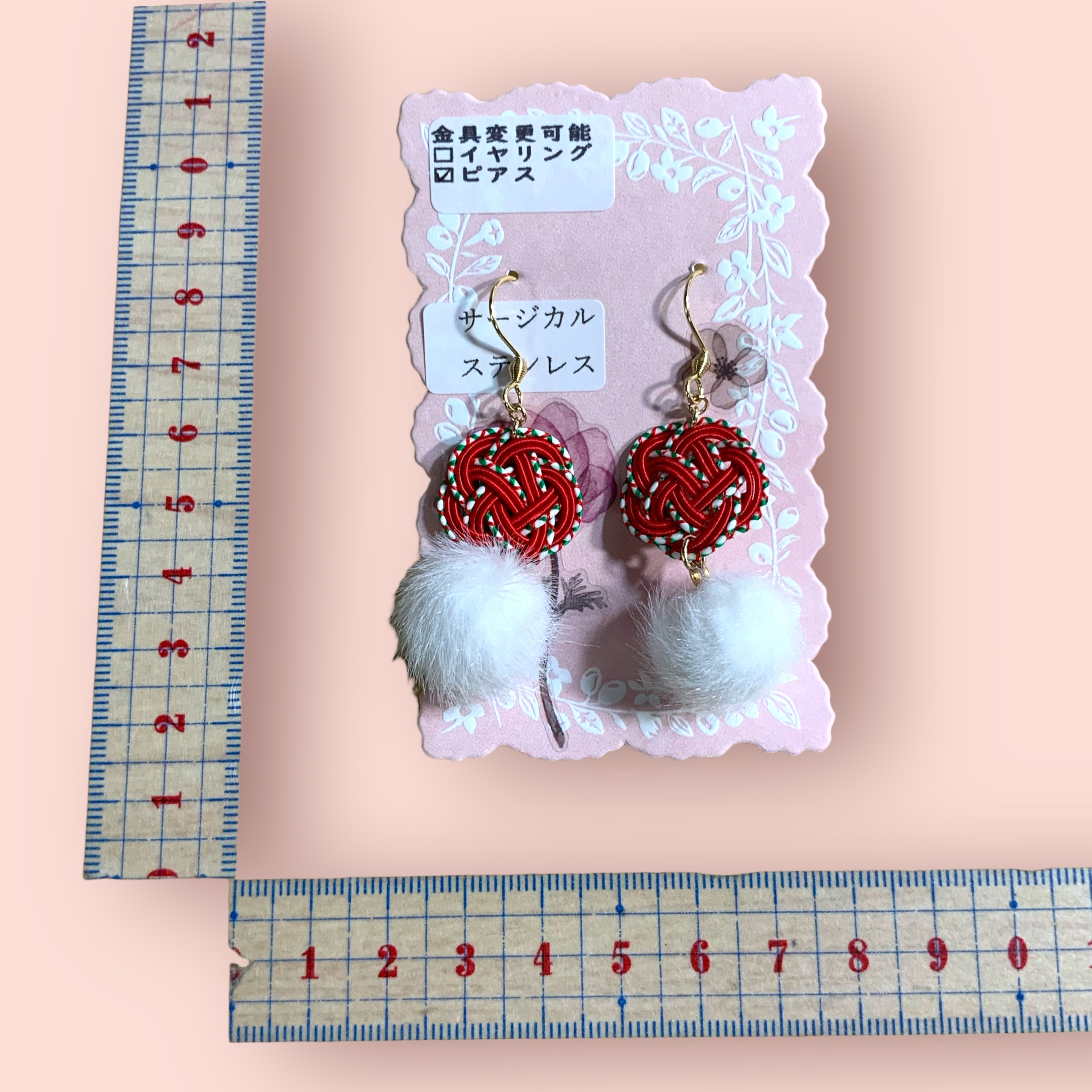 ピアス 水引き×パール×ポンポン