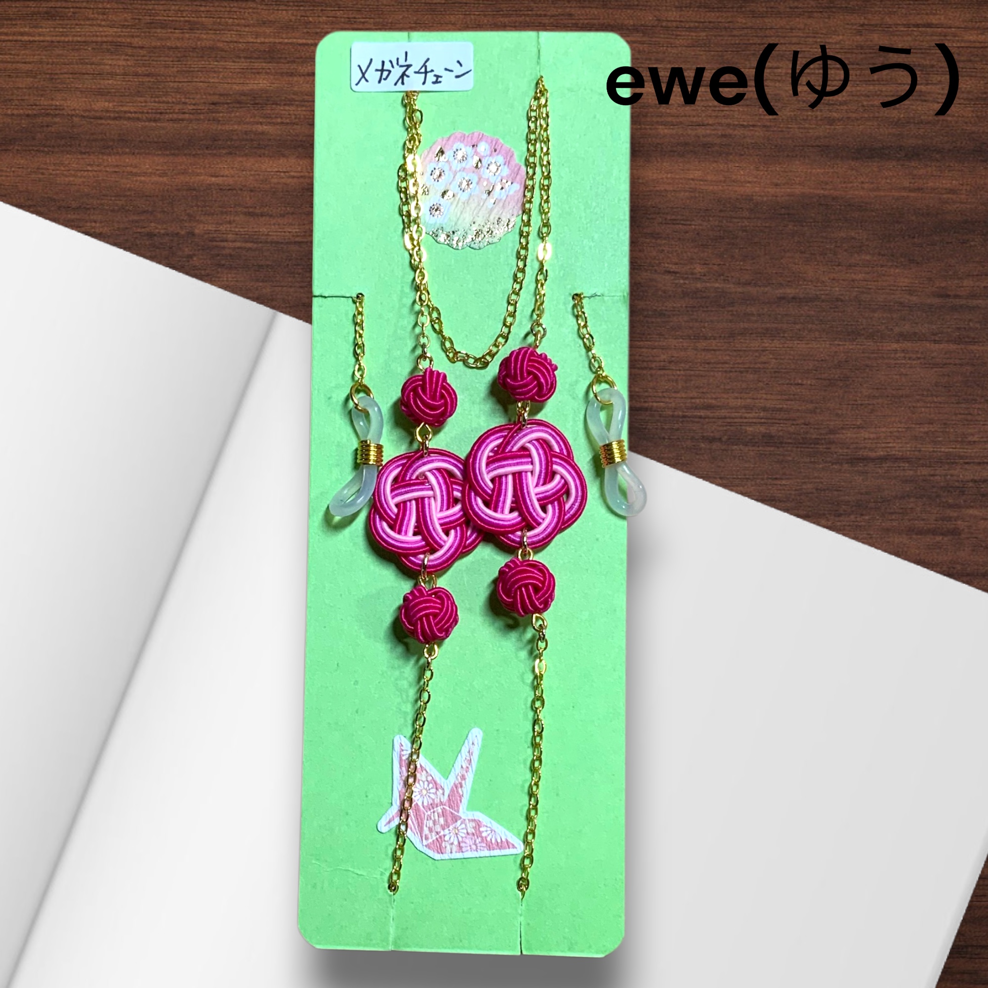 メガネチェーン ピンク梅×濃いピンク玉 2個