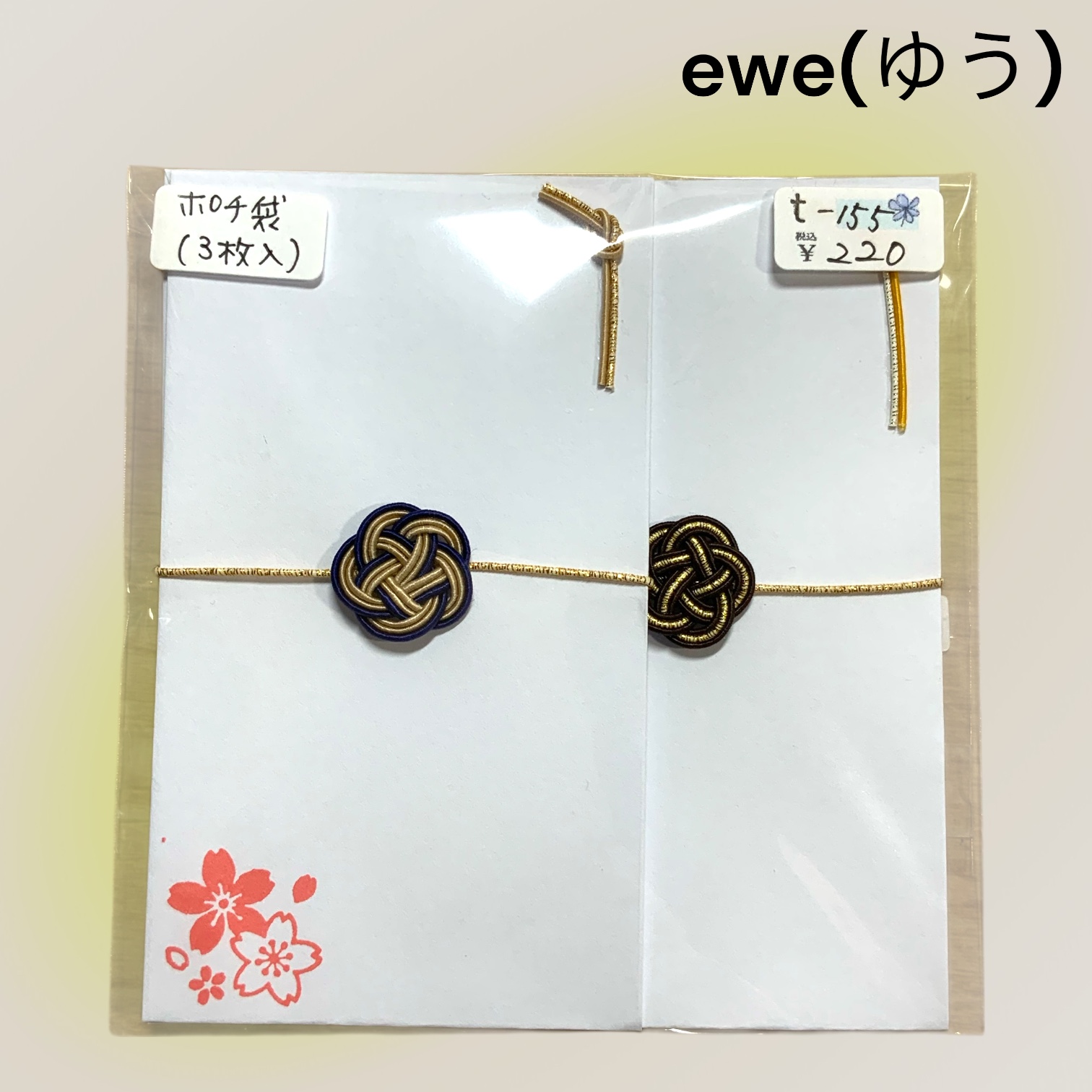 ポチ袋 3枚セット ベージュネイビー、茶金、ベージュネイビー(白)