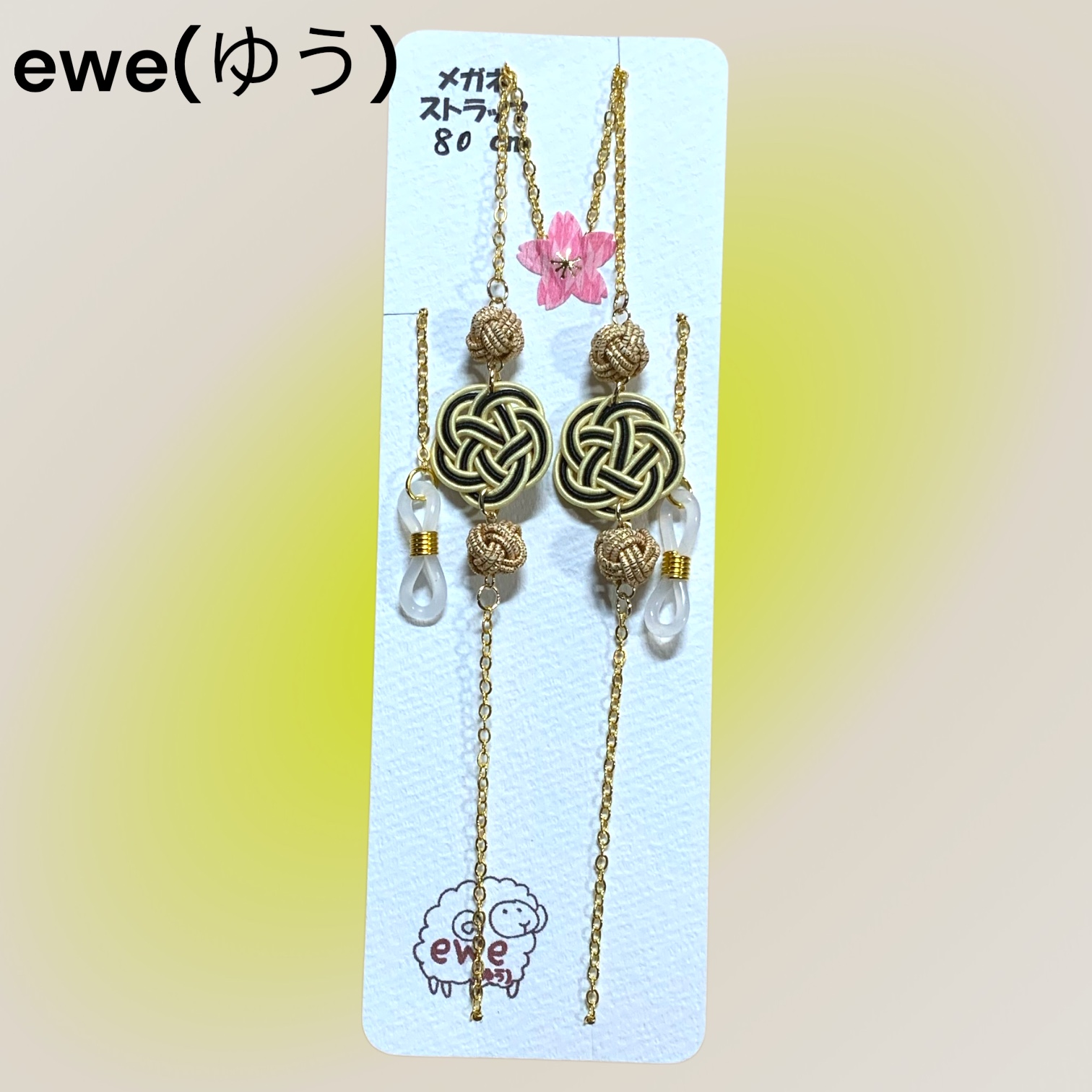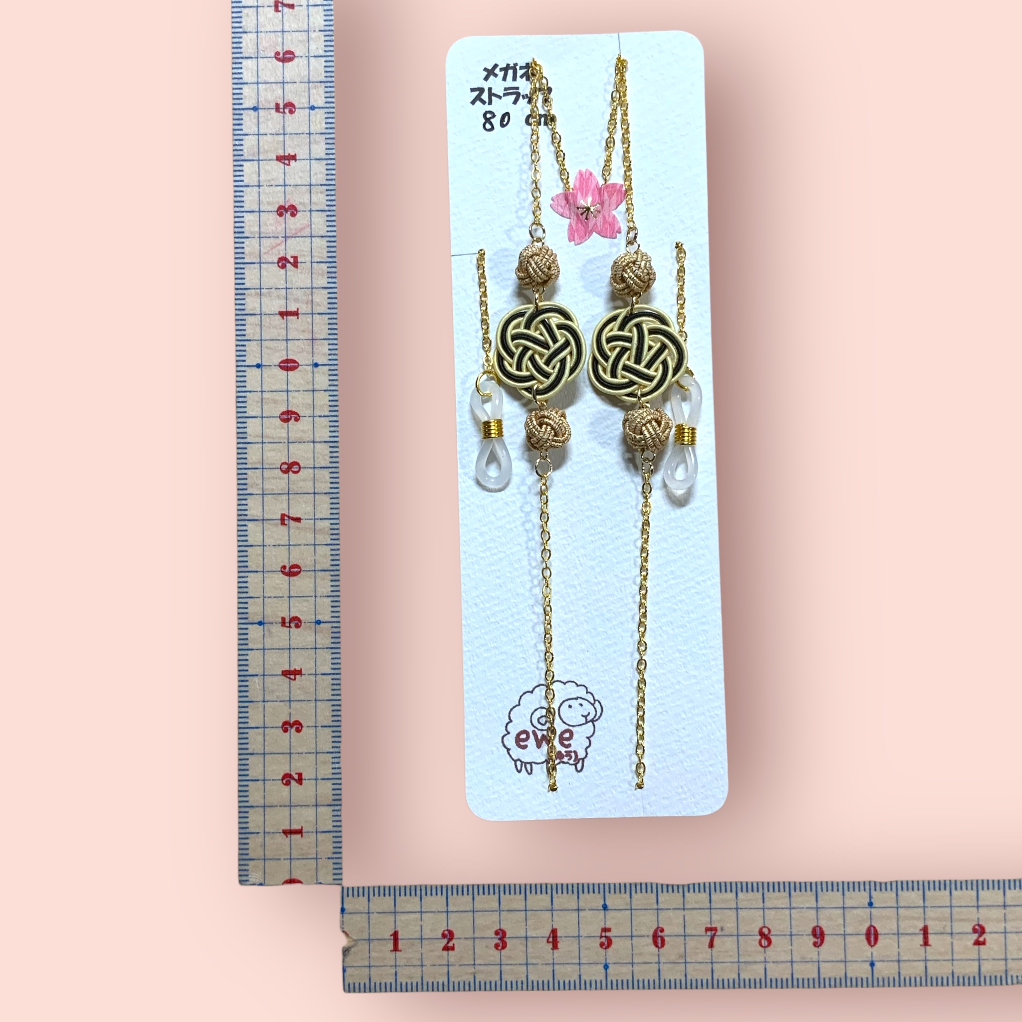 メガネチェーン 薄ベージュ2×黒1 茶ビーズ