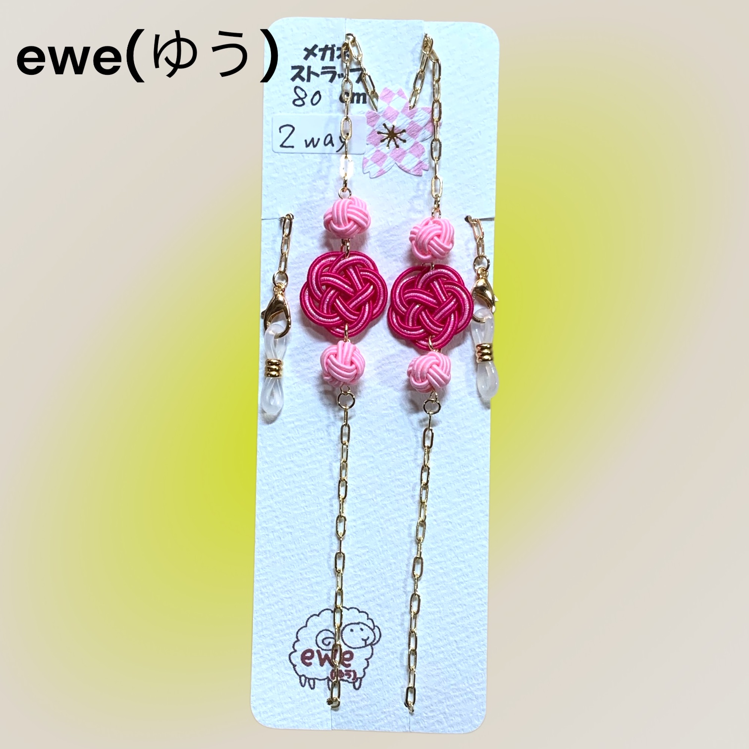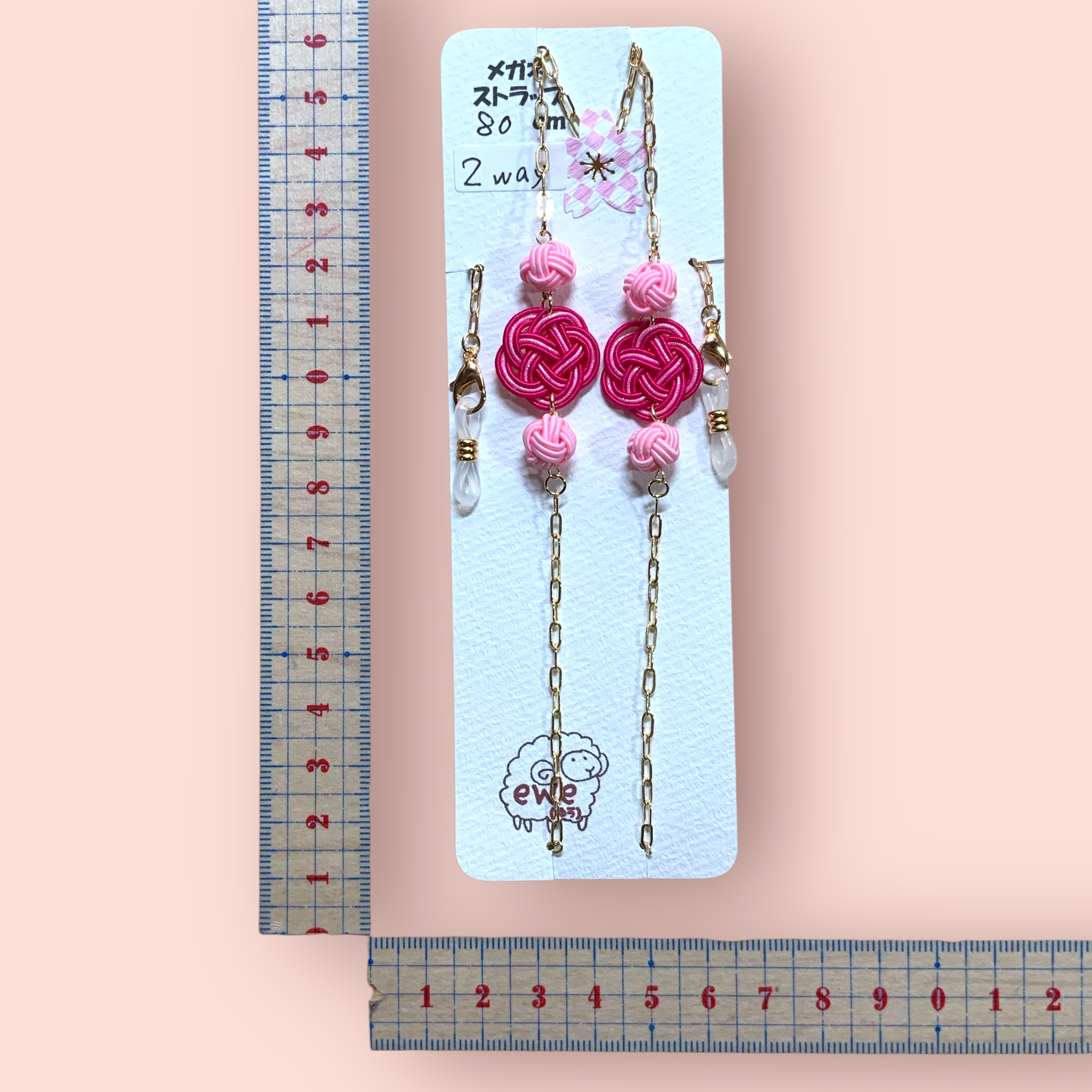 メガネチェーン 2way 濃いピンク2×ラメピンク1 薄ピンク玉