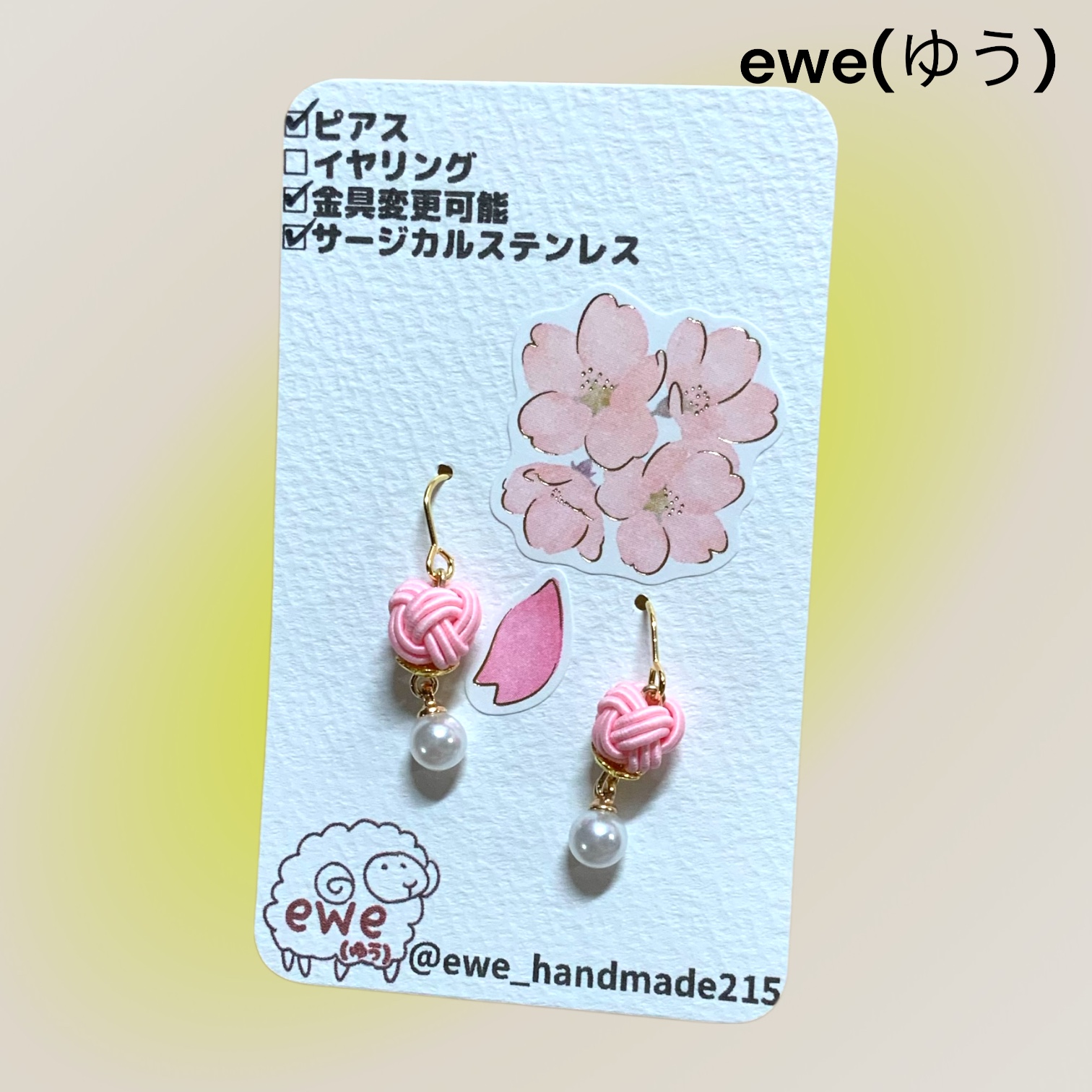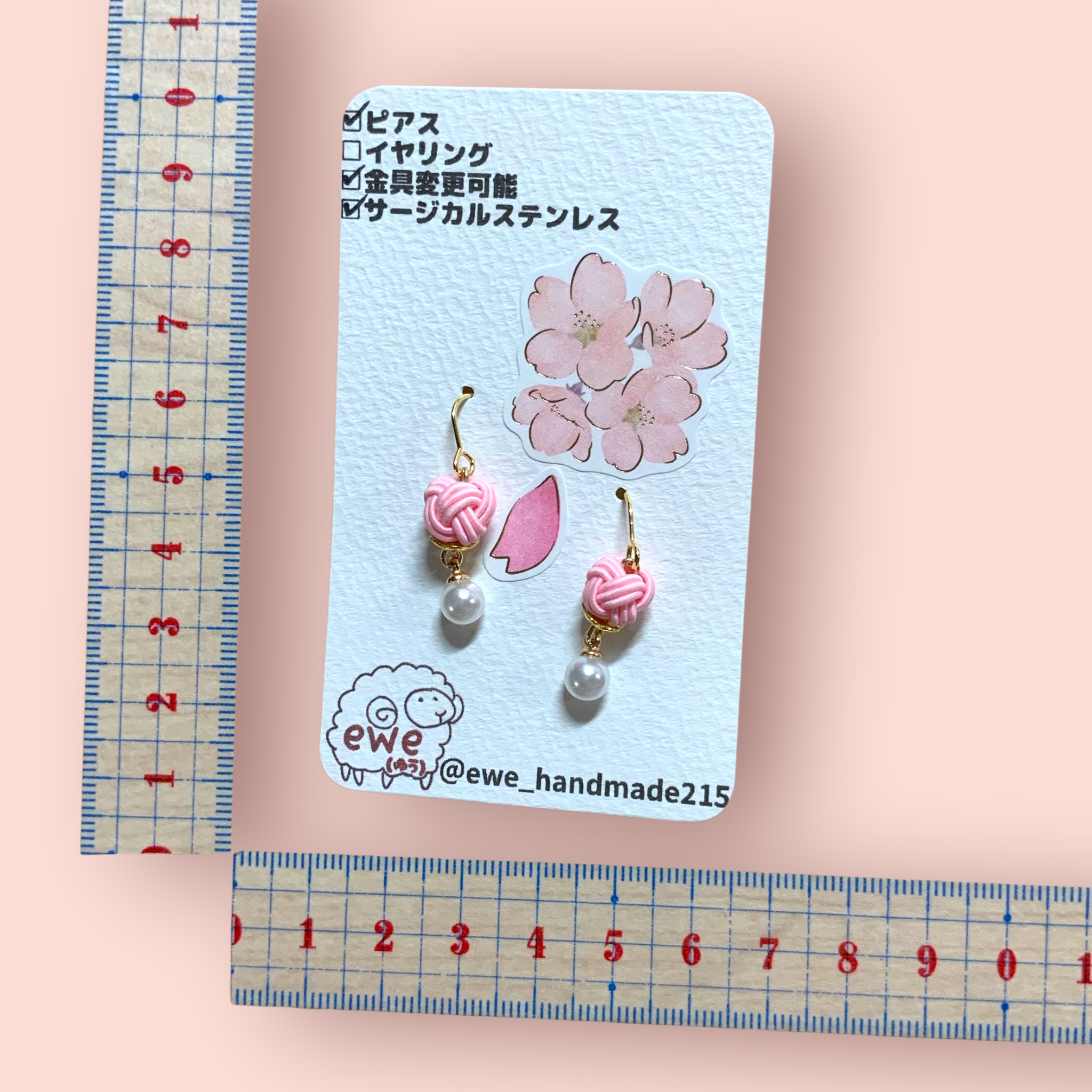 ピアス 水引 ピンク玉×パールビーズ