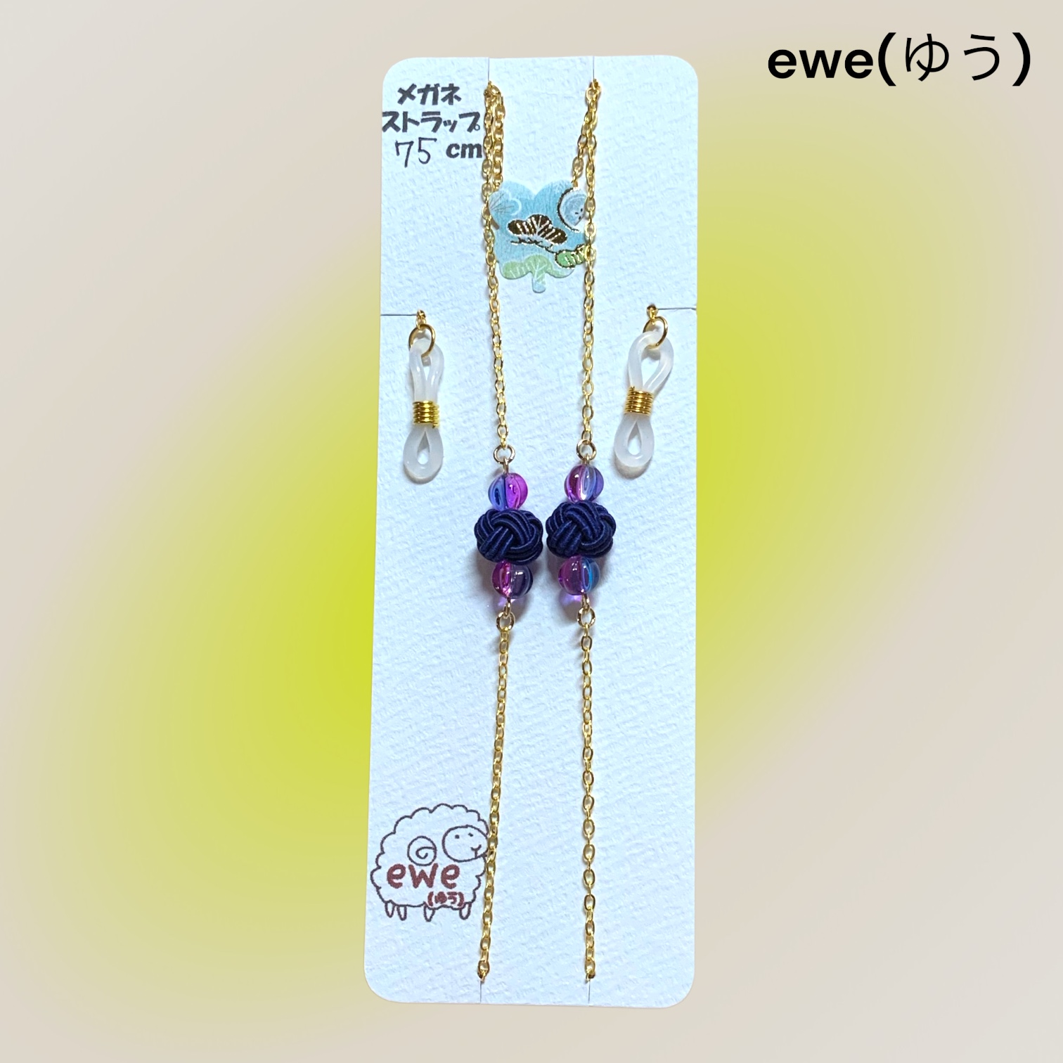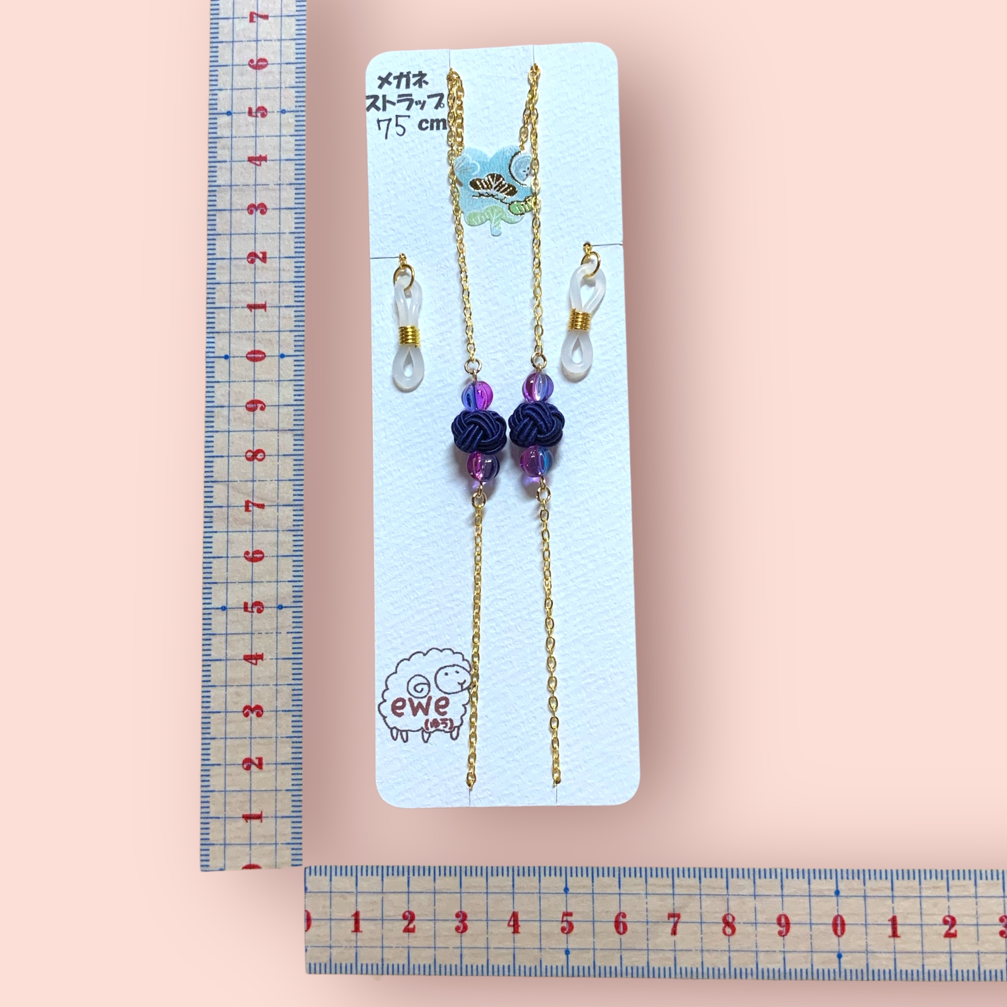 メガネストラップ ネイビー玉×チェコビーズ