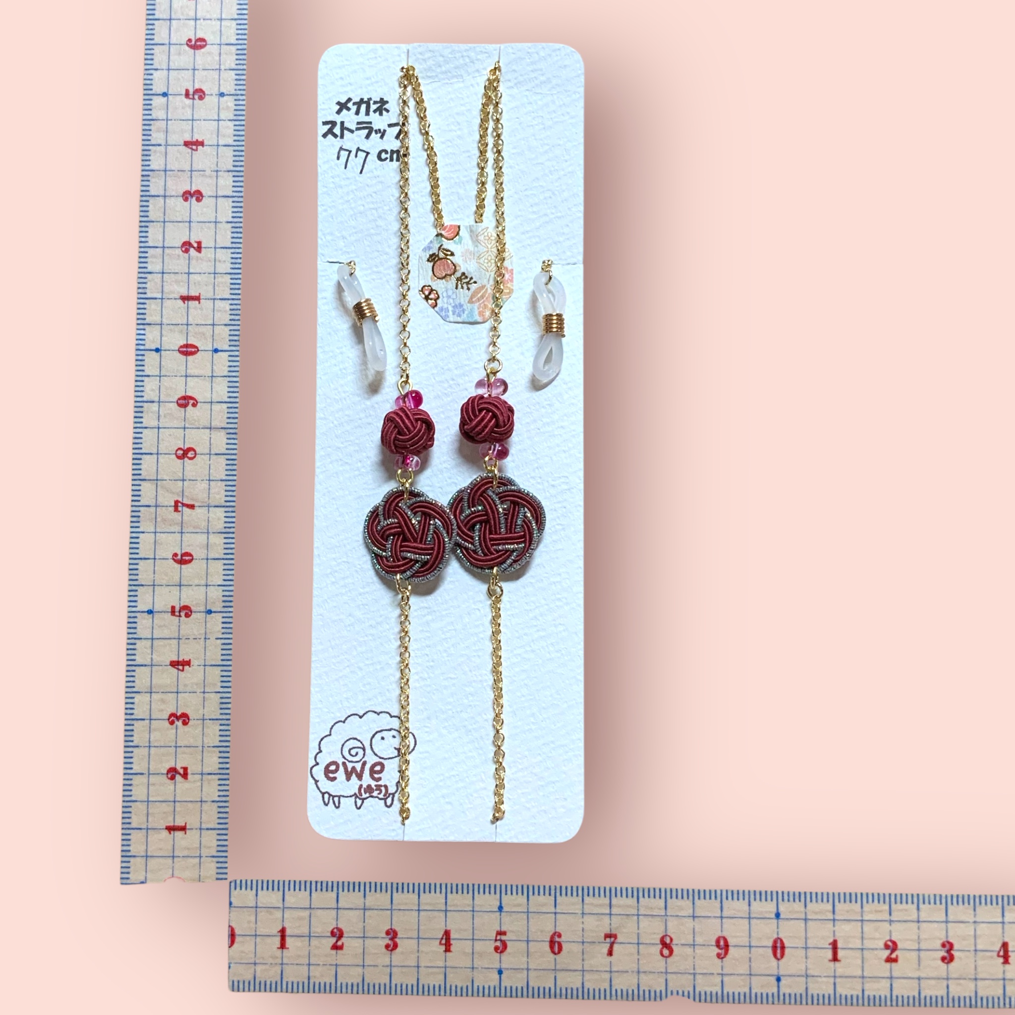 メガネストラップ  エンジ梅×玉