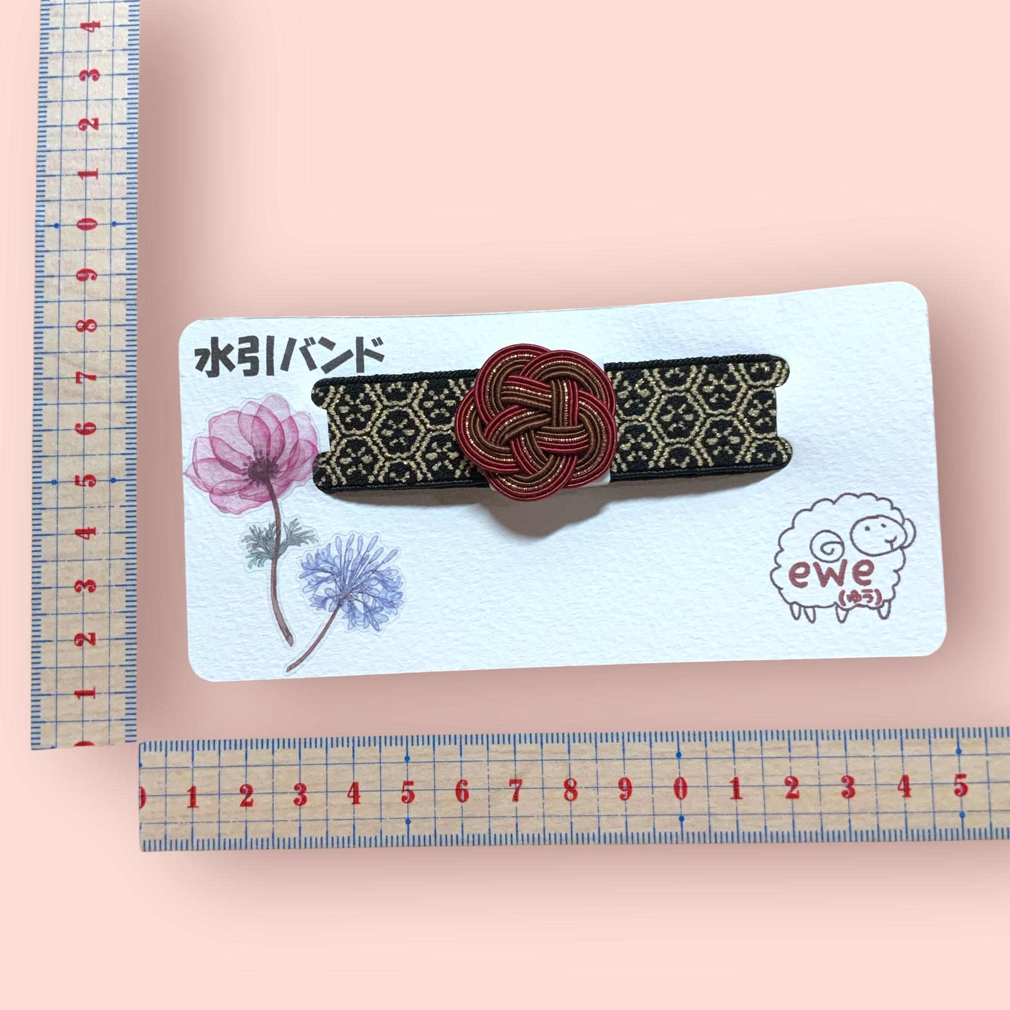 水引きバンド   えんじ×茶色 梅× 黒金ゴム