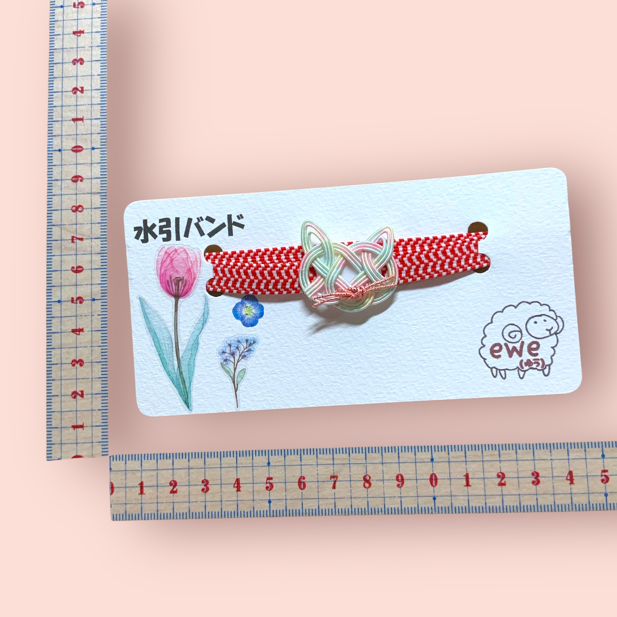水引きバンド パステルレインボー猫 赤ゴム