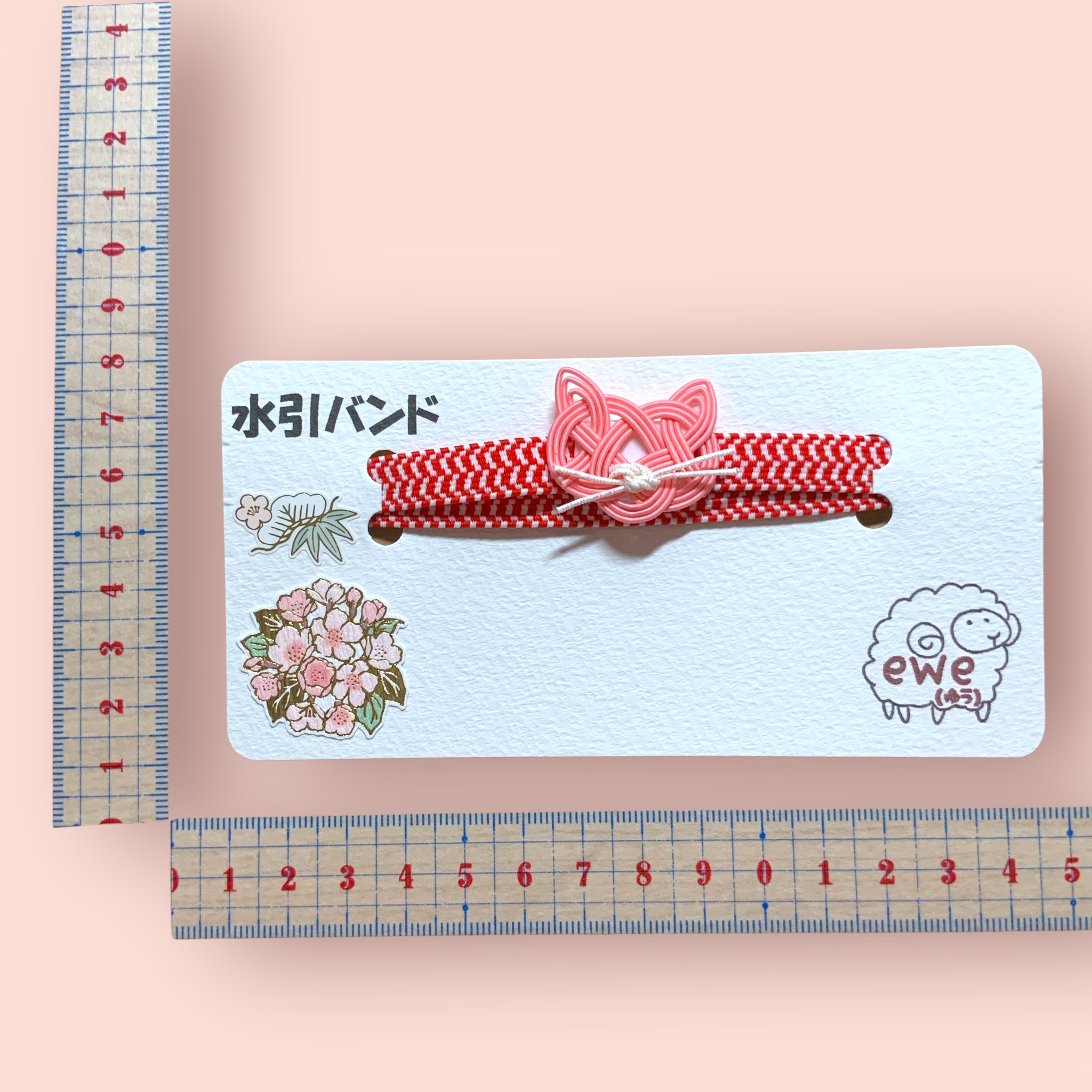 水引きバンド ピンク猫 赤ゴム