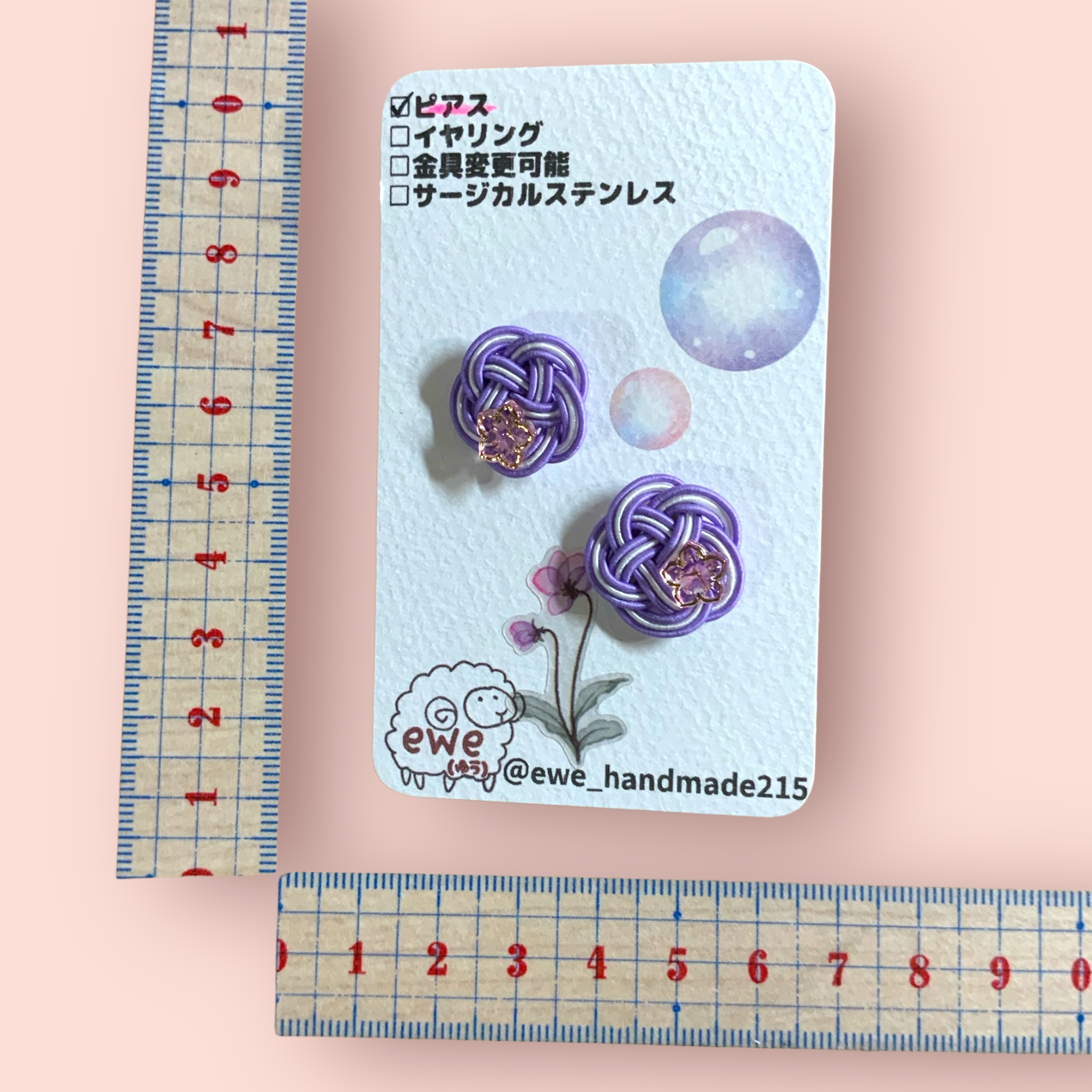 ピアス 水引き パープル×白 梅 お花